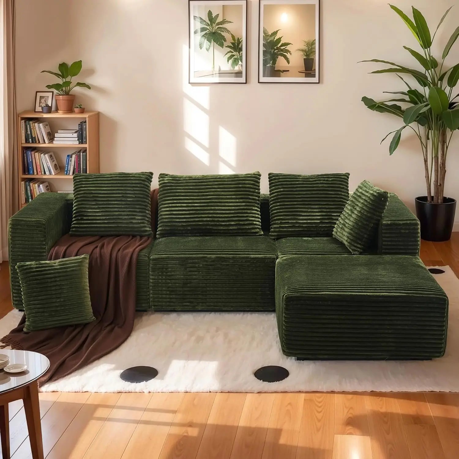 - LUXURY: The classic look of the sofa with chaise lounge with soft corduroy fabric creates an indulgent and cozy space that fits perfectly into your dream home.