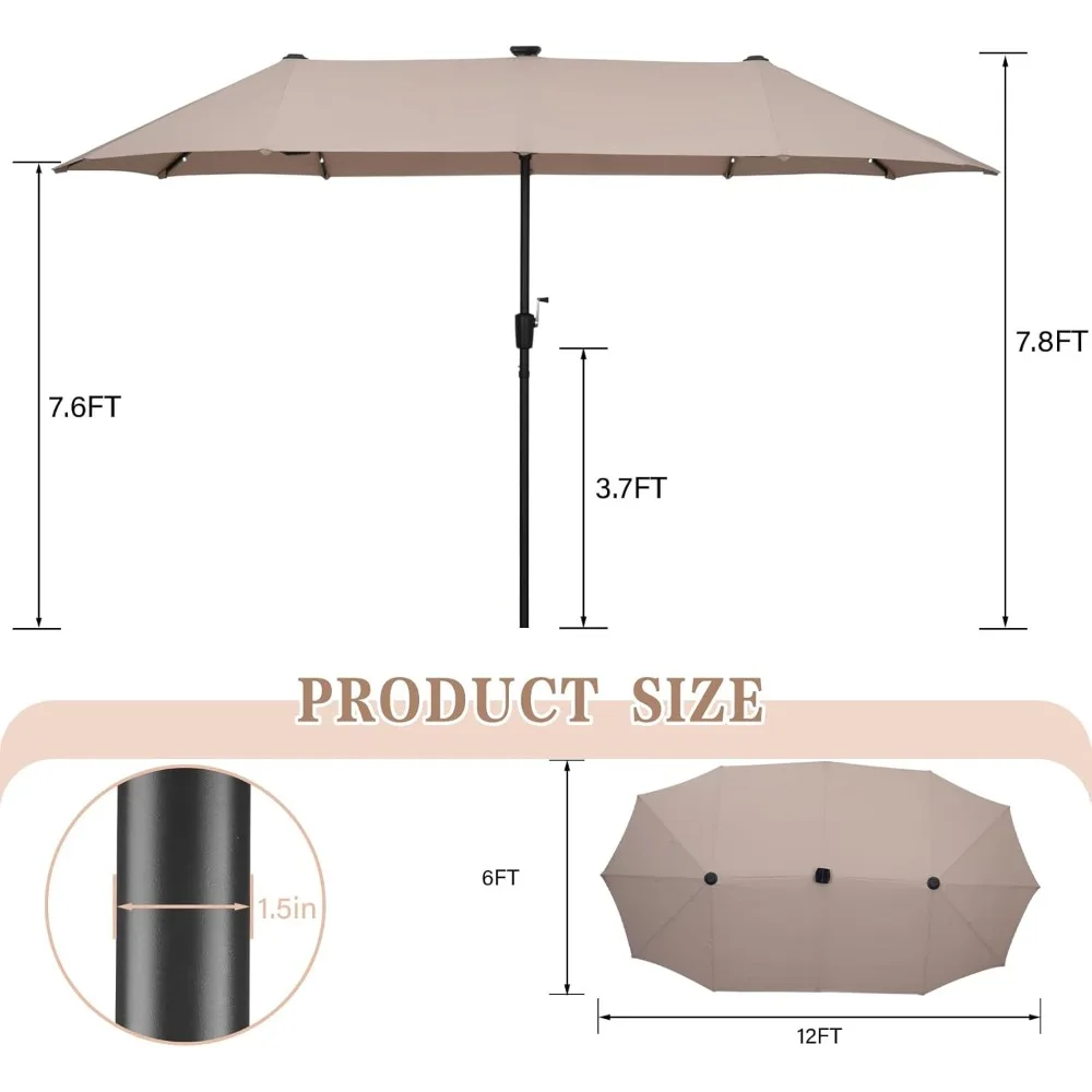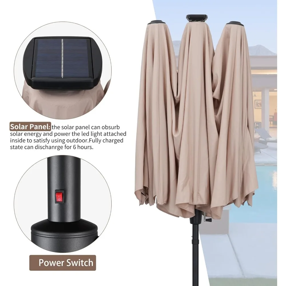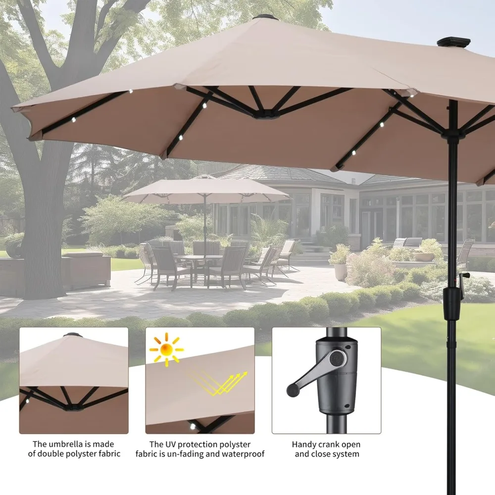 13 FT Rectangular Patio Umbrella and Matching Base with 36 Solar Powered LED Lights Ultimate Sun Protection