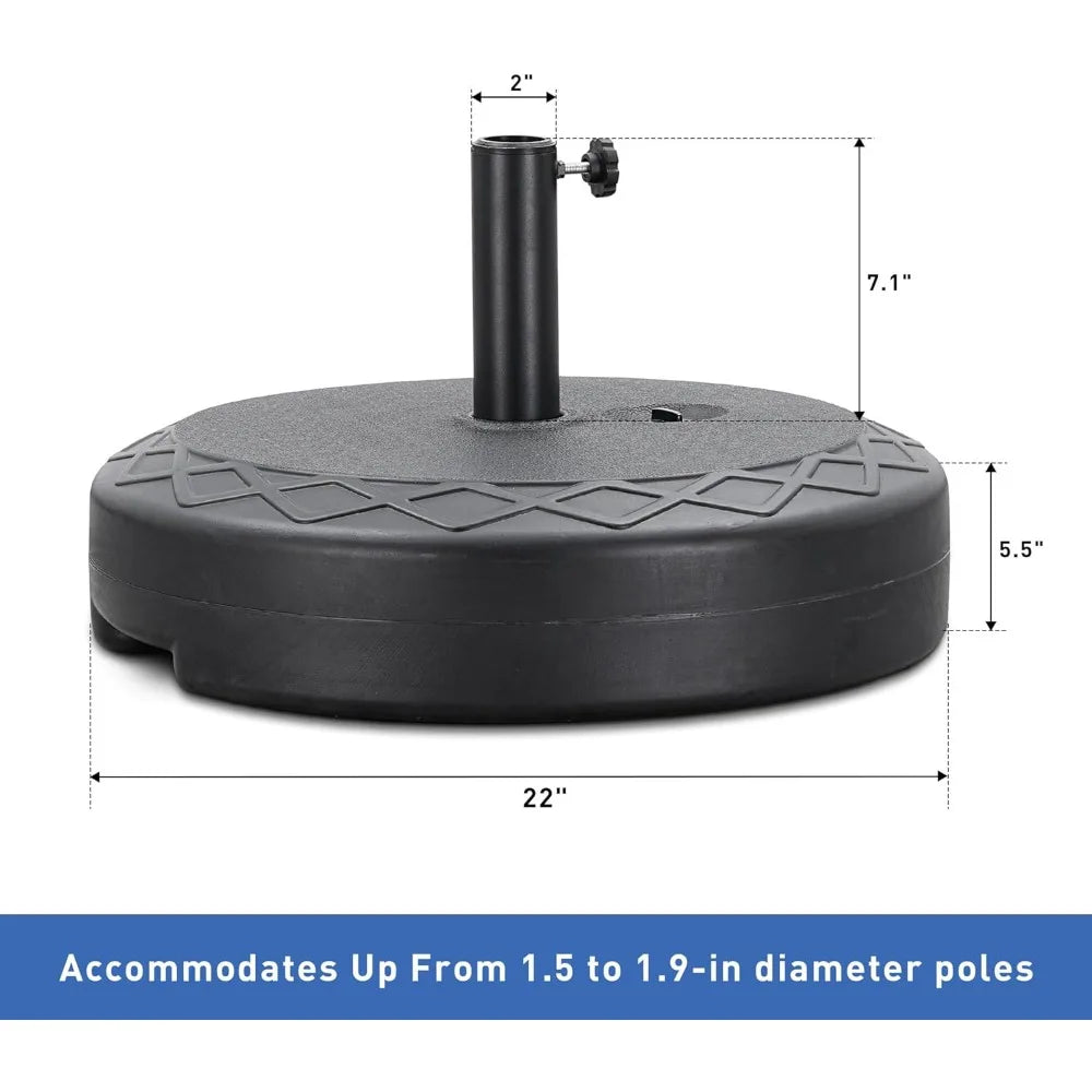 - 【Includes Base】 This product comes with an adjustable base, so you don't need to spend time looking for a suitable base. The round base features a filling hole for water or sand, allowing for maximum stability and enhanced support. It has a capacity of up to 95 pounds of sand or 30 liters of water, but can also be emptied for easy portability