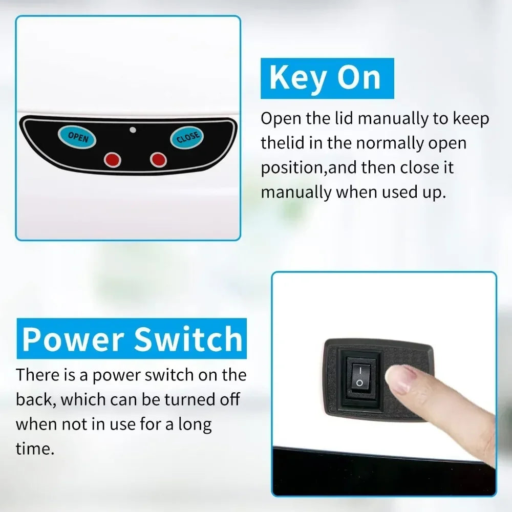 - 【Our Warm Tips】If you find that the infrared sensor is not working, please check if the power switch on the back top of the trash bin is on or the battery is dead.