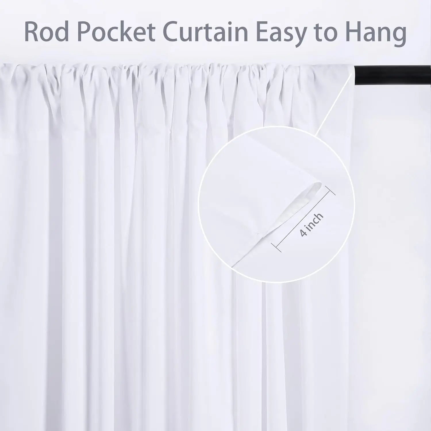 - Premium wrinkle-free polyester features a 4-inch rod pocket at the top for easy draping or hanging straight, simplifying setup and handling.