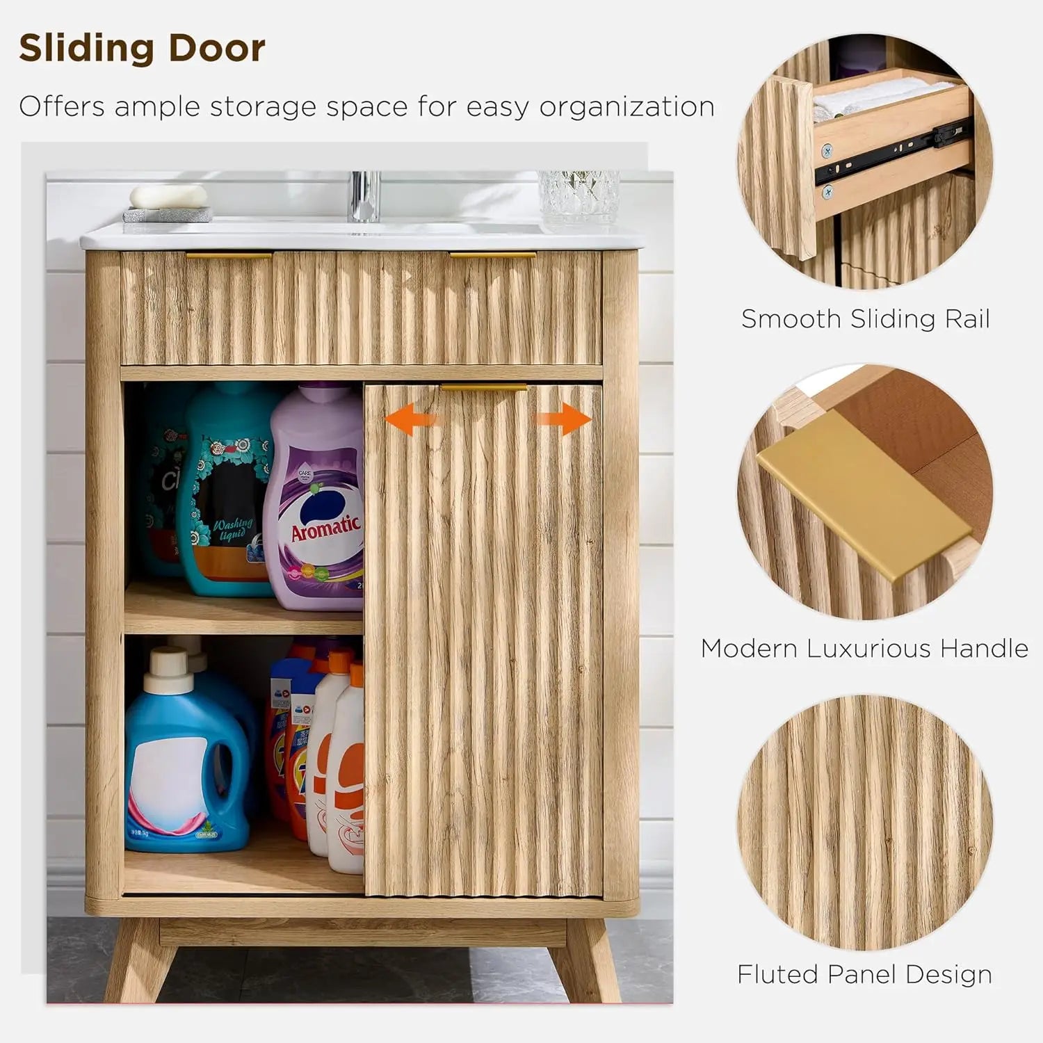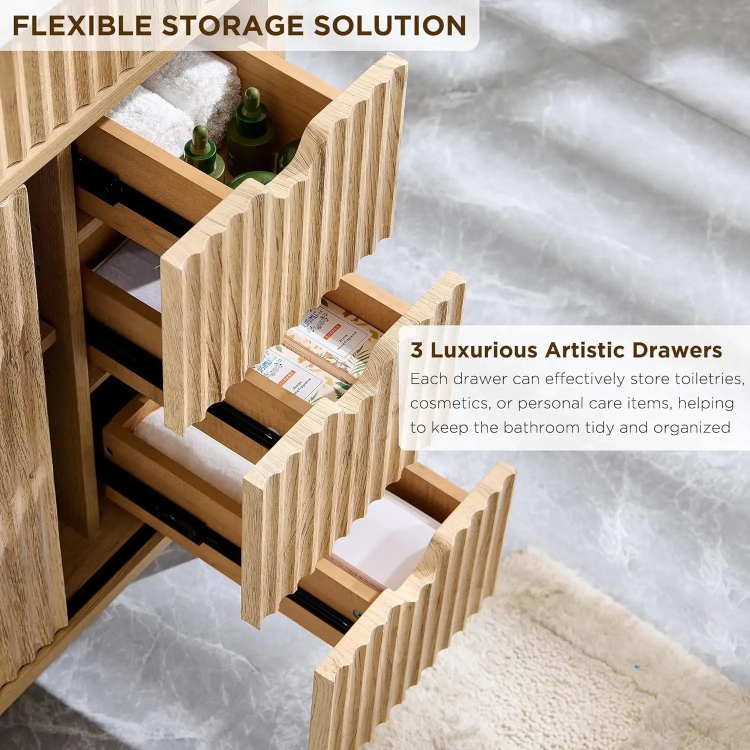 Elevate your bathroom with the 24-inch XMSJHignconcerned Fluted Vanity with Ceramic Sink, delivering compact modern style and practical storage for smaller spaces.