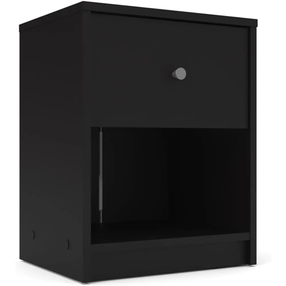 Elevate your bedroom with a Scandinavian-inspired, engineered-wood 3-piece set in bold black that brings minimalist style and practical storage to your space.