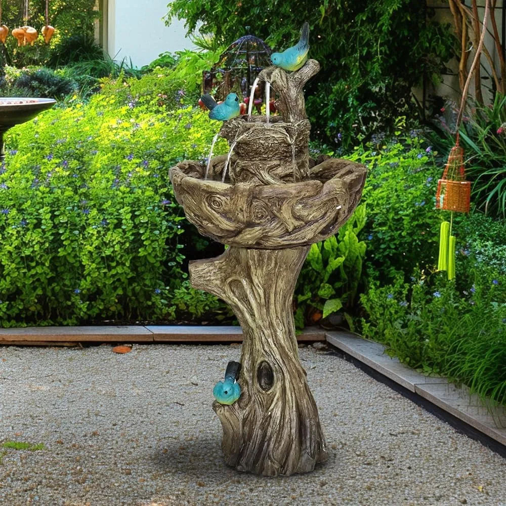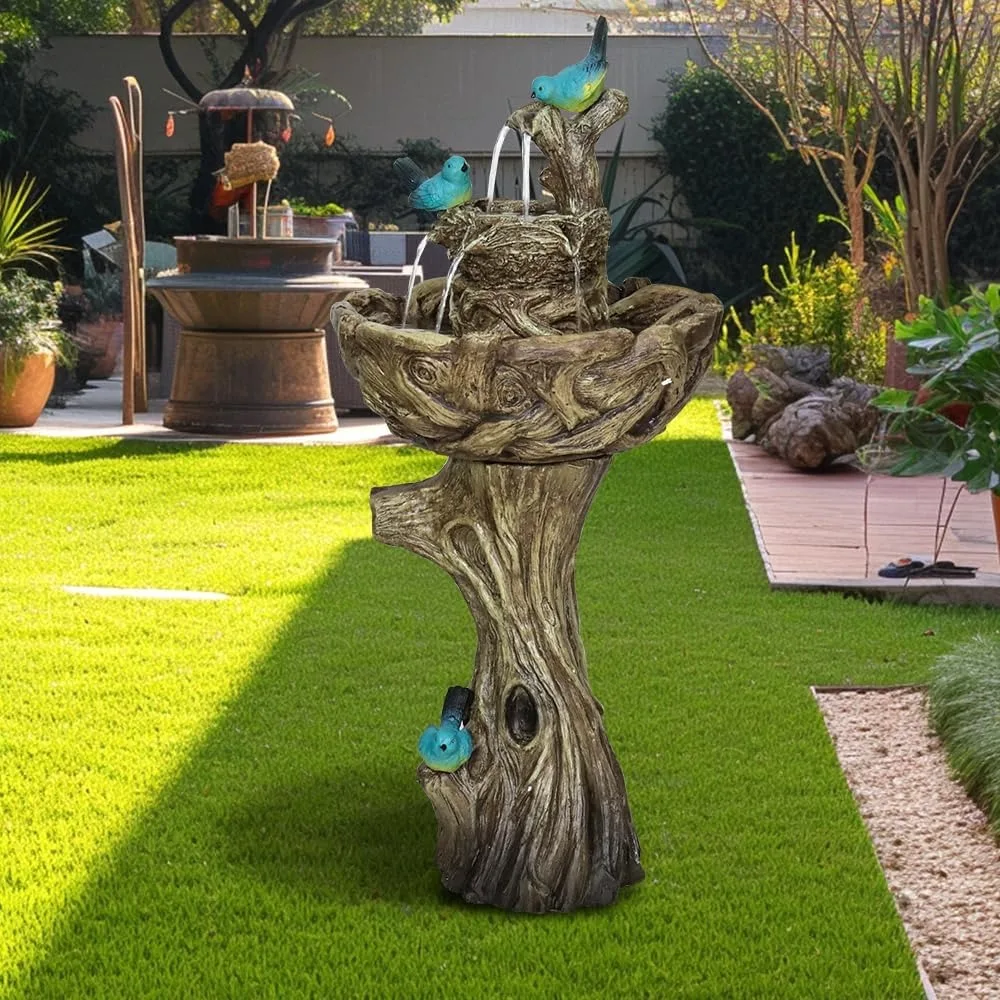 - Functional Fountain Birdbath: Combining water fountains and bird bath, this outdoor fountains and waterfalls become a work of function art. Its trunk-like design adds visual interest and sophistication to any outdoor setting, elevating the aesthetic appeal of your garden or patio. With its intricate detailing and appreciated for its practicality, this water feature serves as a functioning art that seamlessly integrates into your outdoor decor.