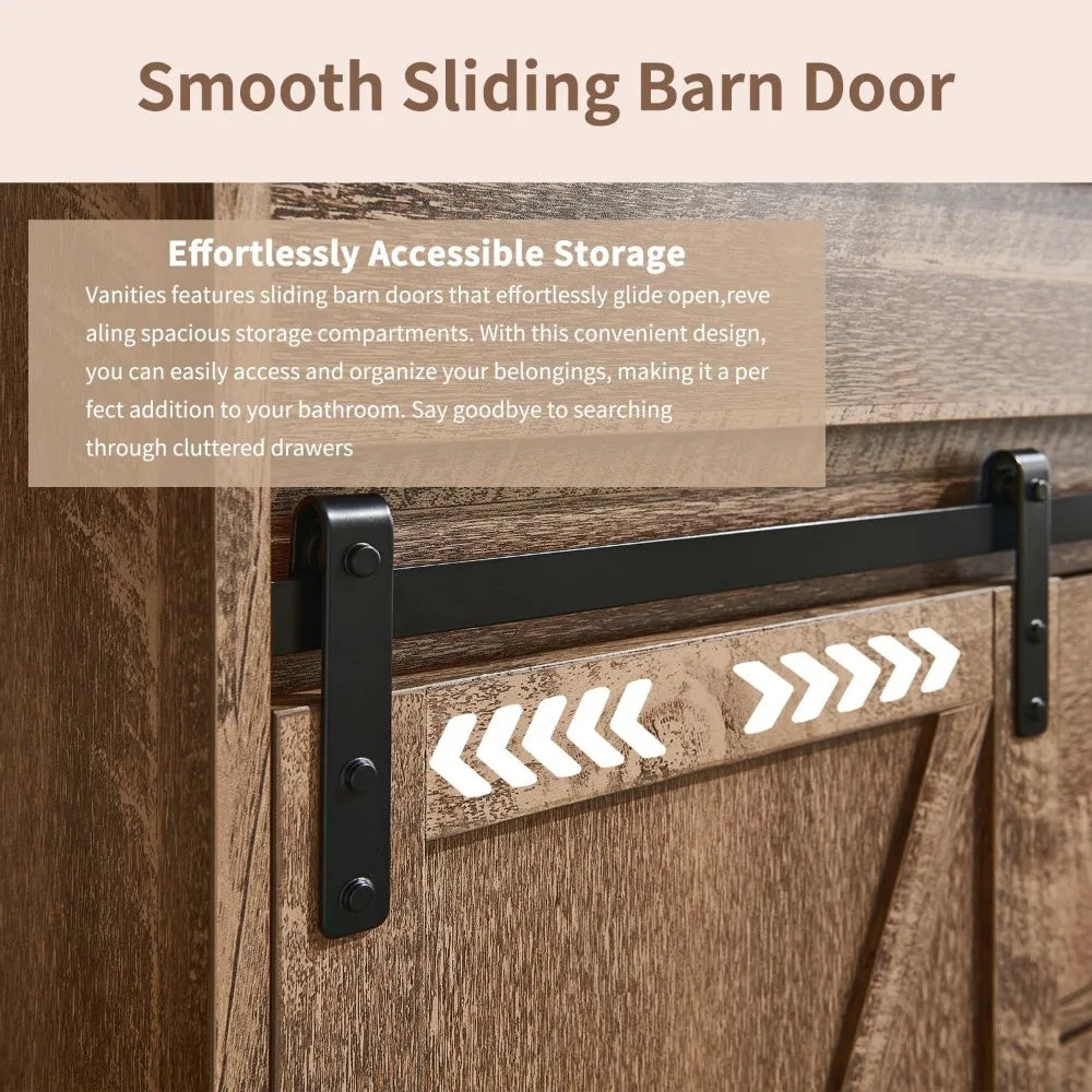 30" Farmhouse Vanity with Sink, 33.7" Tall with Sliding Barn Door, Wooden Floor Standing Cabinet w/3 Drawers & Adjustable Shelve