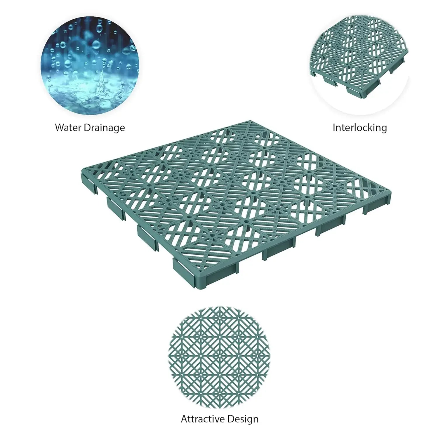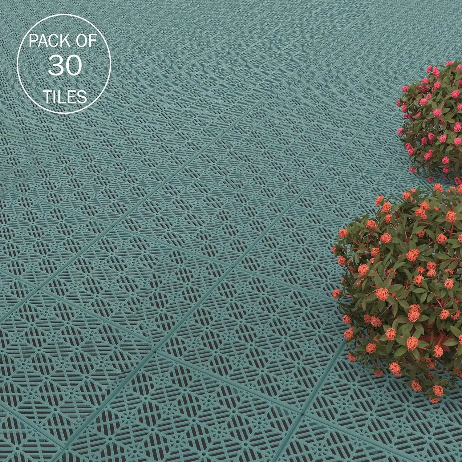 - Interlocking, tool-free installation lets you create a seamless surface that adapts to your footprint, including balconies, patios, porches, and garages, even on uneven floors.