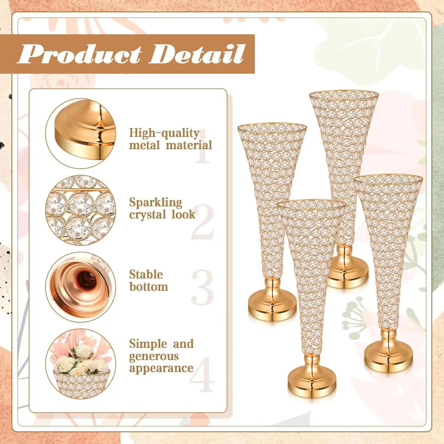 - Dimensions Details: these trumpet vases centerpieces measure about 20 x 6.7 inches/ 51 x 17 cm, have a proper size that fits well in most space, is designed with an elegant pedestal and can be complemented by a range of flowers; With crystals glittered around the vase's jewelry, the vase can bring an exceptional and vibrant sense to your ornaments