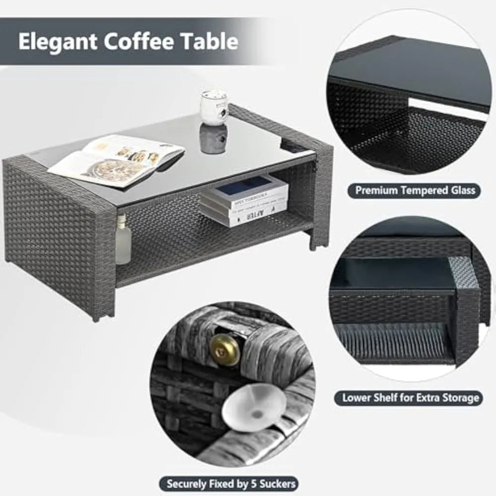 - Versatile 4-piece sectional: Includes loveseat, two chairs, and a glass-top coffee table—perfect for lounging, entertaining, or sipping coffee outdoors.