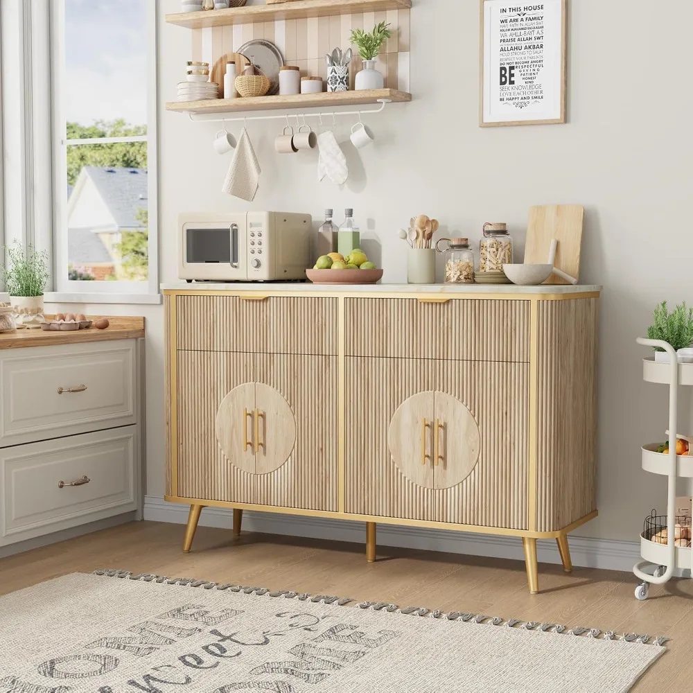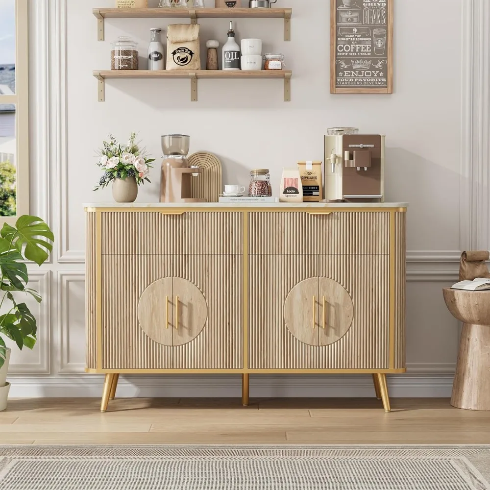 "47.2" Fluted Buffet Cabinet - Modern Coffee Bar with 2 Drawers & Adjustable Shelves, Kitchen/Dining Room Sideboard"