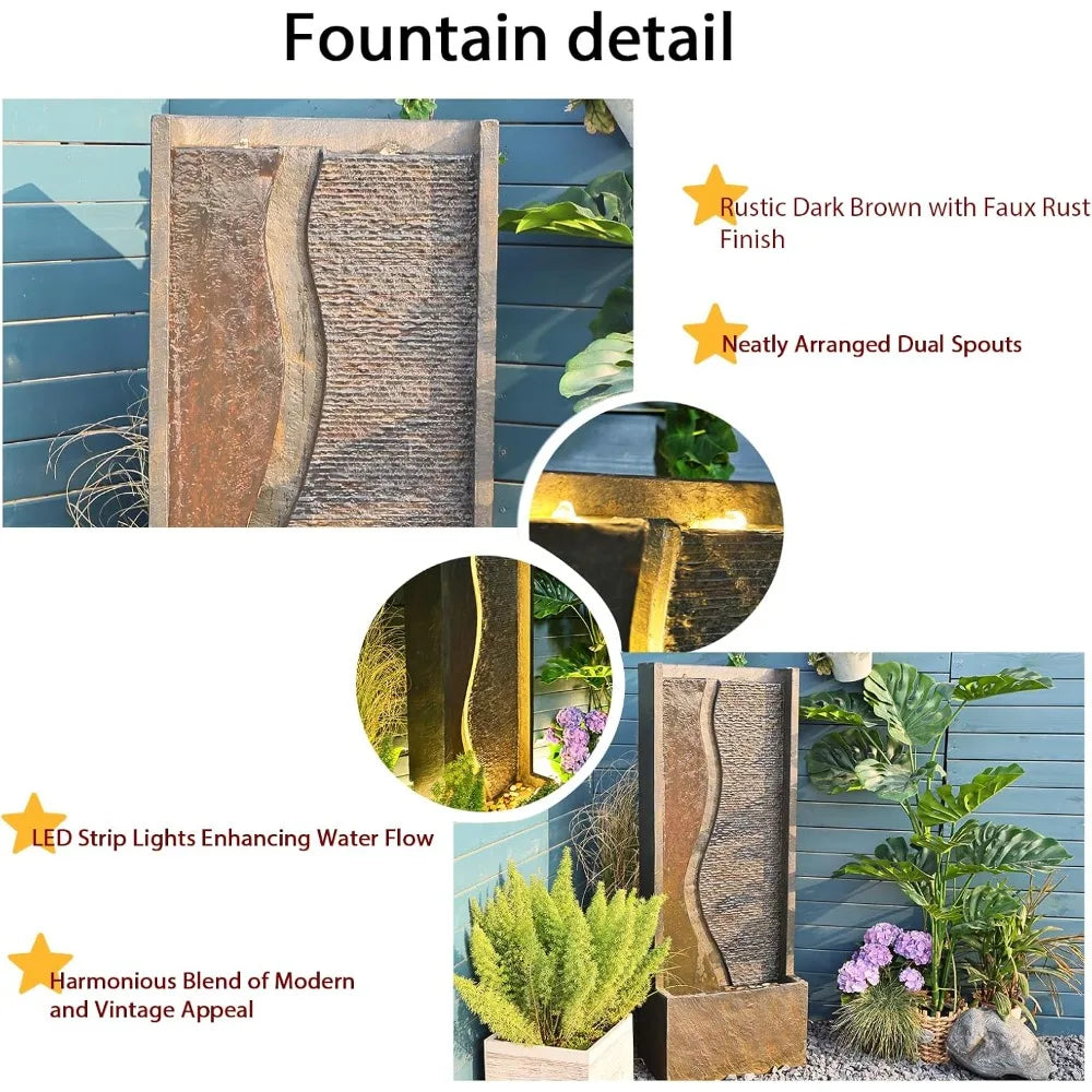 - Two neatly arranged spouts pair with integrated LED lighting to deliver a mesmerizing water display and ambient glow after dark.