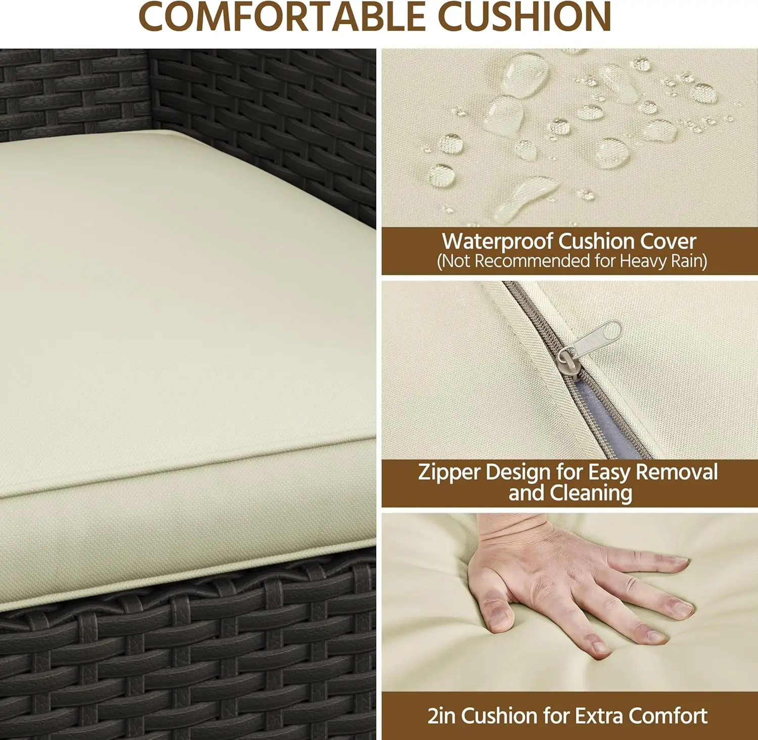 - Cozy Dining Chairs: The winged design of the dining chairs, with curved back and armrests, offers cozy support to relax your body. The HDPE rattan gently adapts to your body with its resilience, allowing you to fully enjoy outdoor meals or settle in for a casual evening with friends