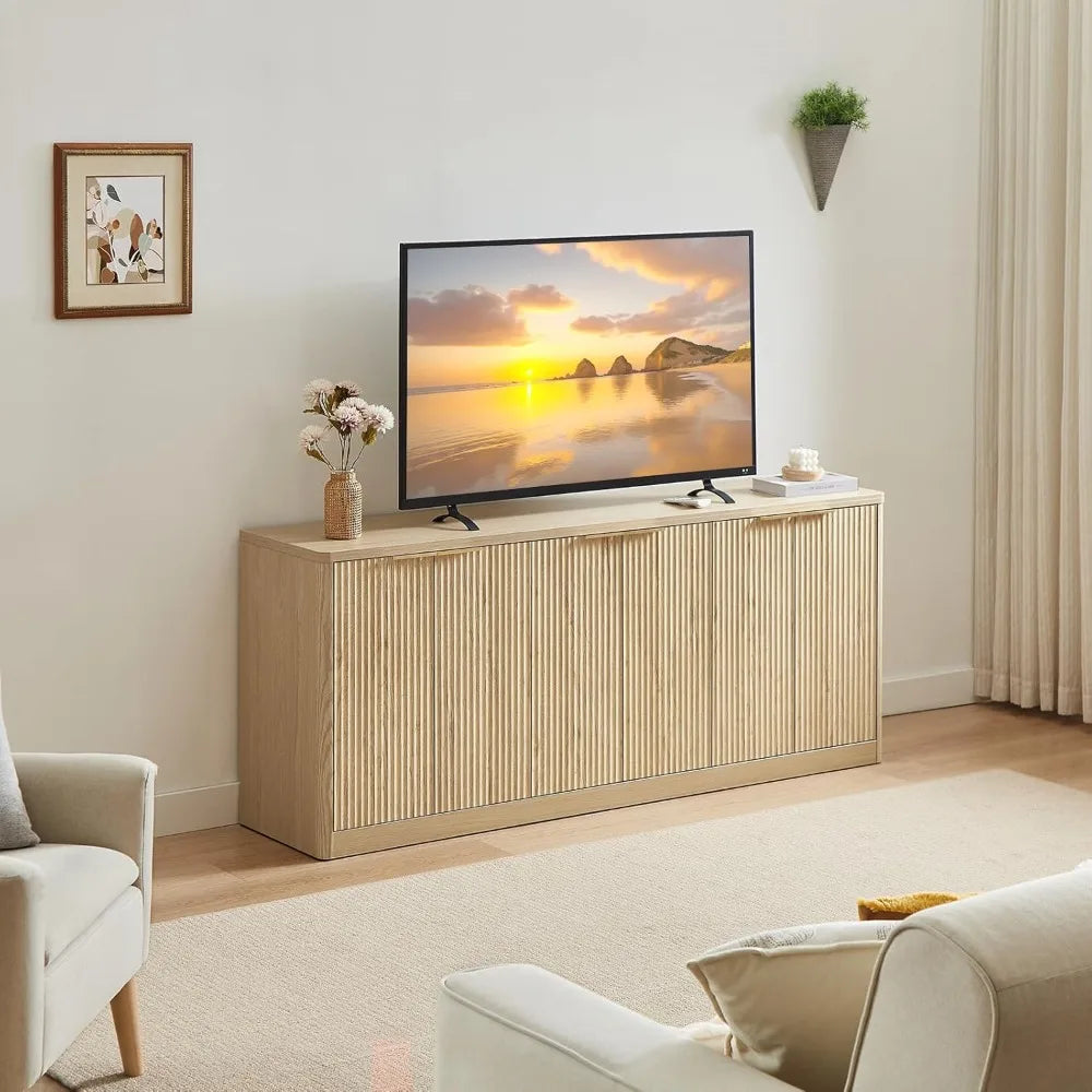 Elevate your dining space with the Guangbai Fluted Oak Sideboard Buffet Cabinet—a sleek, modern storage piece that helps you stay organized.