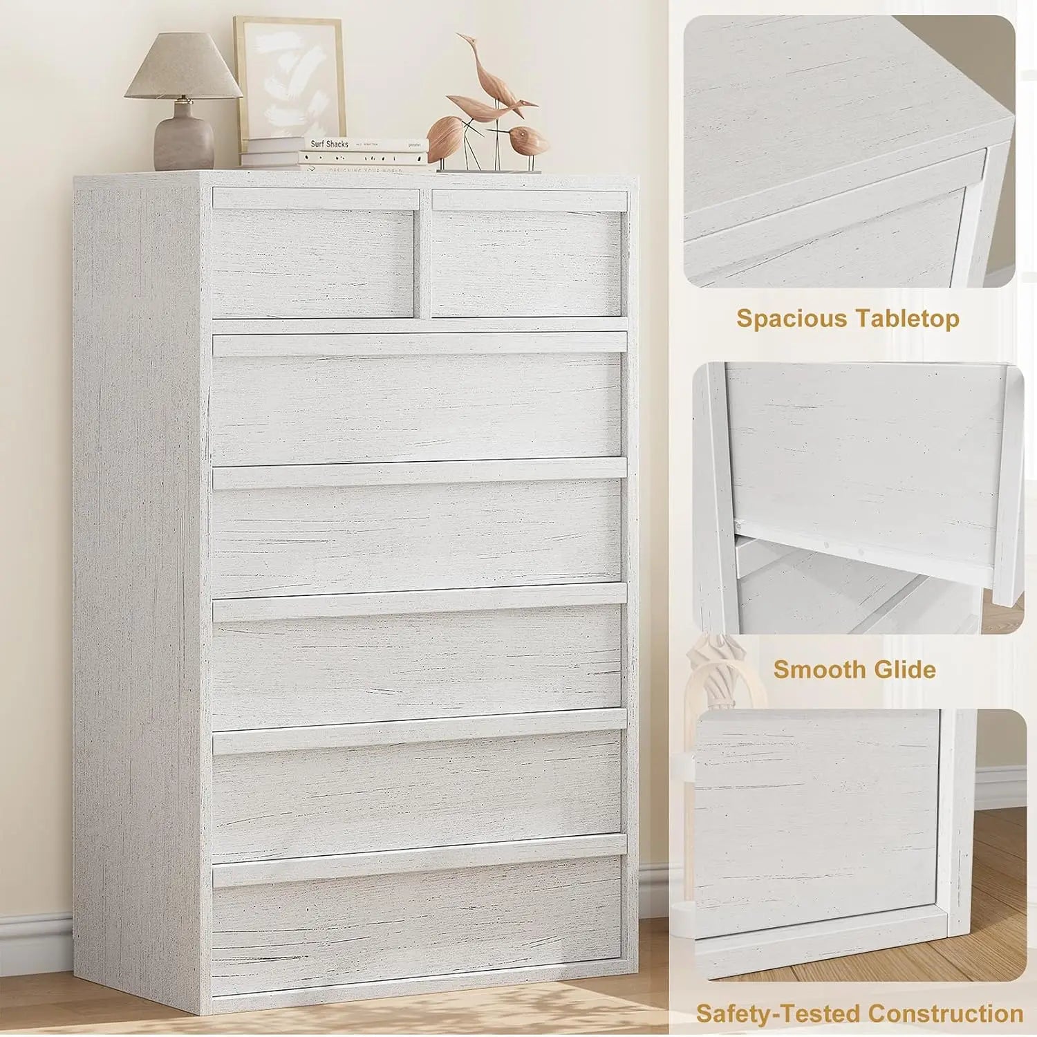 STURDY CONSTRUCTION - Constructed with thicken wood panel and solid base foundation, our 7 chest of drawers is designed for longevity and sturdiness, ensuring it withstands daily using. The attached anti-tipping device will enhance the stability and durability to keep your family members safe