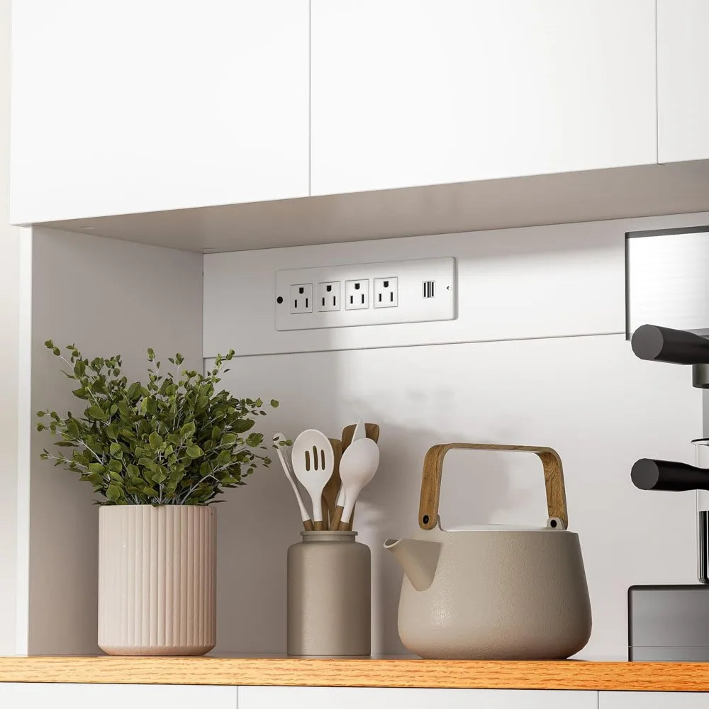 - Built-in charging station: 2 USB ports and 4 AC outlets keep devices powered while you prep, plus soft-close doors and drawers for quiet, everyday use.
