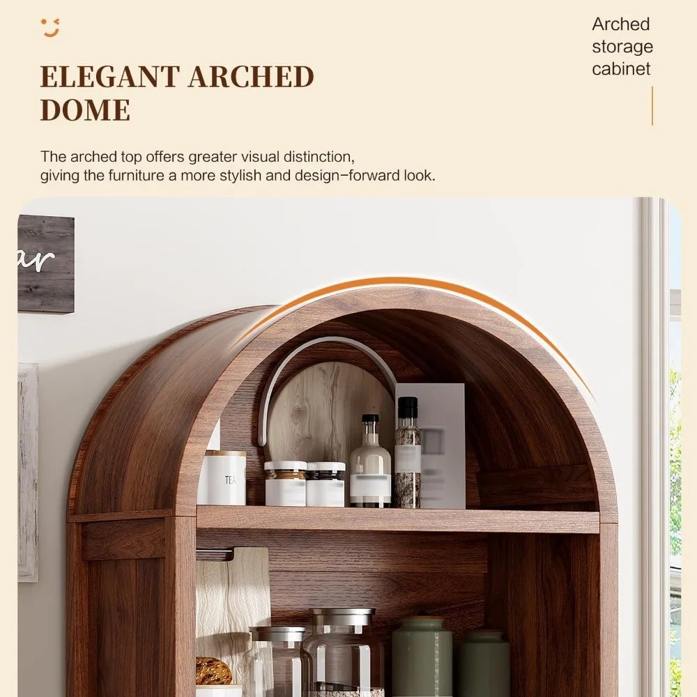 - 【Sturdy Construction & Scratch-Resistant】This versatile dining cabinet combines durability and style, featuring a reinforced MDF wooden frame and a sturdy build. Measuring 71.26"H × 30.7"W × 15.35"D, it fits seamlessly into kitchens, dining rooms, or living rooms. The elegant arched panels add a modern farmhouse charm while providing ample vertical storage space. Finished with a scratch-resistant surface, this cabinet is not only beautiful but also practical. It serves as both an efficient organizational hub and an attractive focal point in your home.