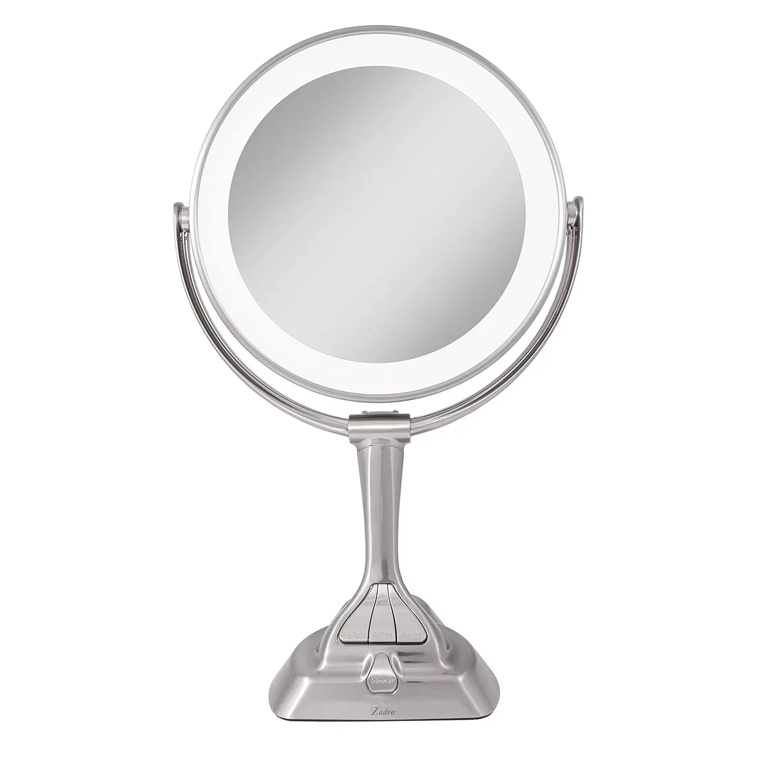 - LED makeup mirror with lights and magnification stands 15.75-inches tall with 10-inches wide & 6-inches deep, a 9-inch mirror head consists of a 7-inch diameter dual-sided reflective surface mirrors & a 1-inch circular LED ring light