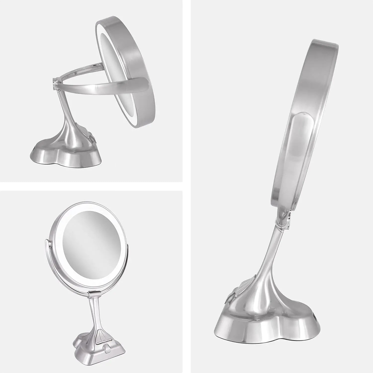 - ANGLE ADJUSTABLE: Fully height adjustable mirror head and neck for custom positioning, 360 degree of endless rotatable makeup mirror with lights head