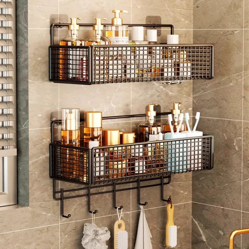Upgrade your bathroom storage with a sleek wall-mounted rack that keeps towels and toiletries within easy reach.