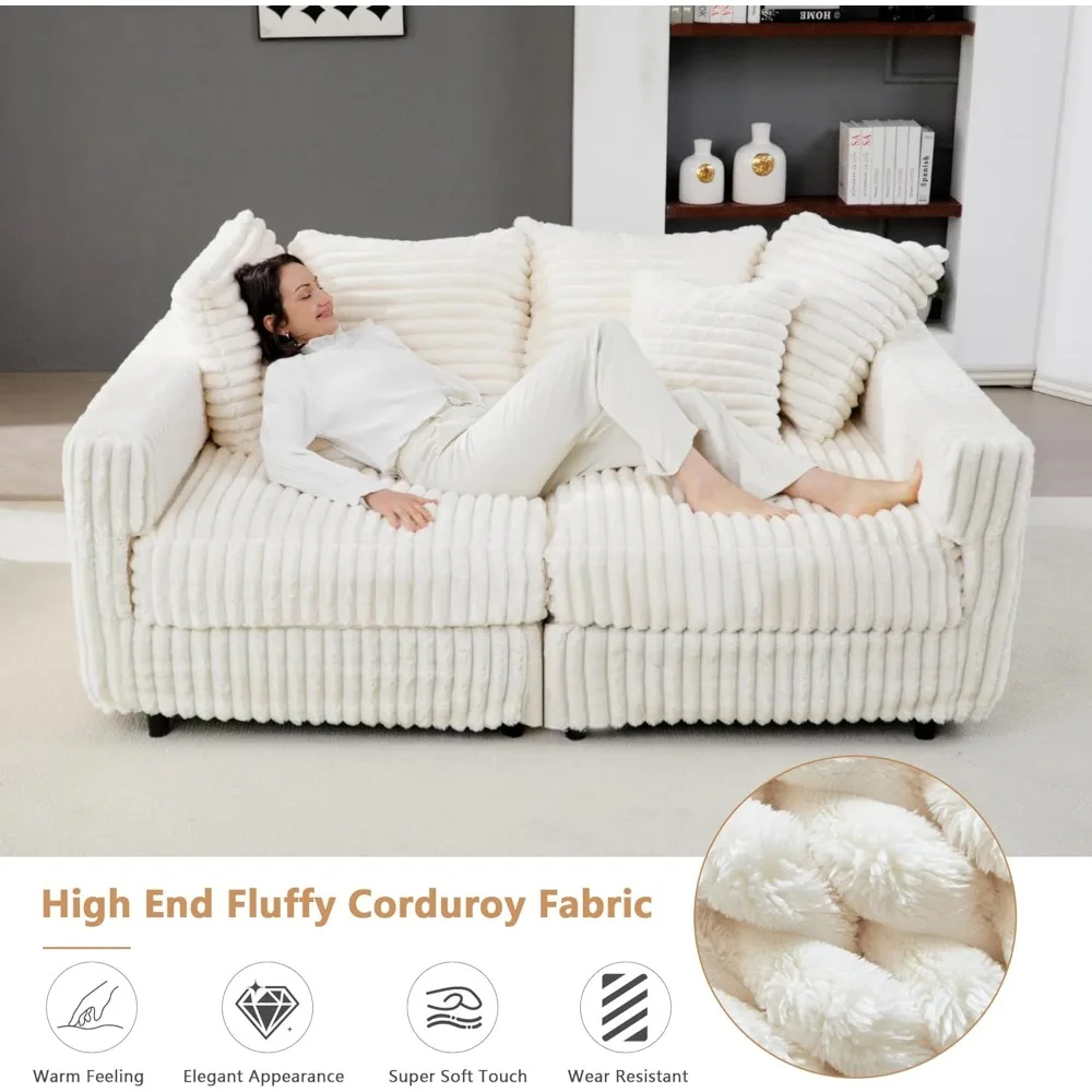 - 【Sturdy & Durable】: Feels very plush,our fluffy corduroy cloud sofas for living room are made of solid wood frame and supported sturdily by strong plastic legs. It is able to hold up to 1000 LBS stably.