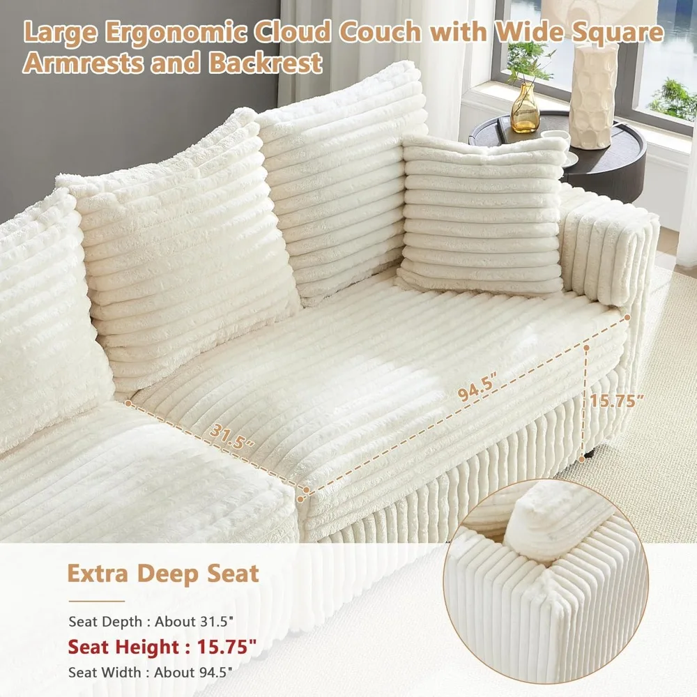 Corduroy Cloud Couches for Living Room,Fluffy 4 Seater Cloud Sofa Couch with Deep Seat,104.3" Modern Modular Sectional Sofa
