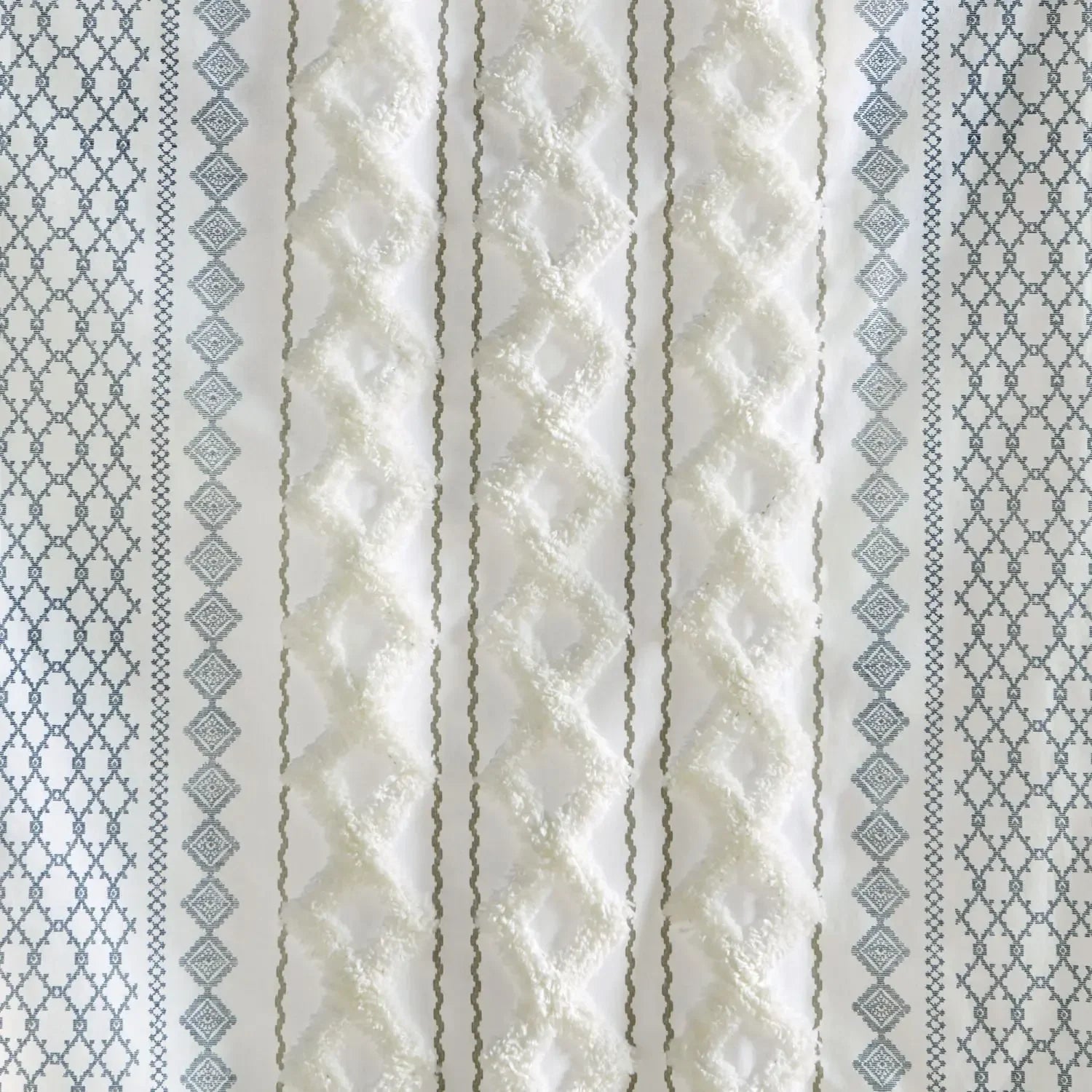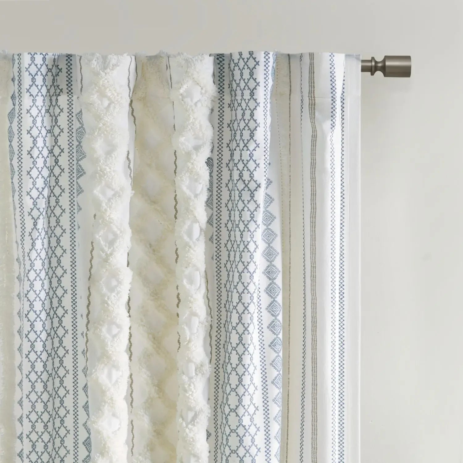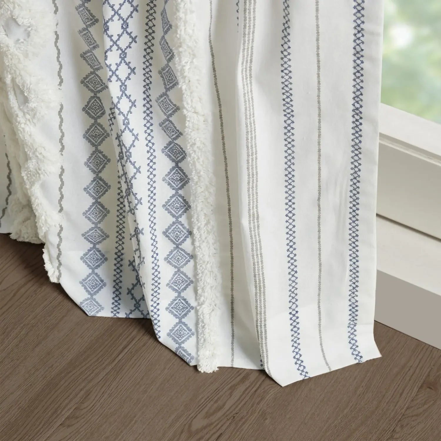 Elevate your space with a cotton printed curtain panel featuring a tufted chenille stripe trim for timeless texture, refined charm, and soft daylight that creates a warm, inviting ambiance in any room, effortlessly.
