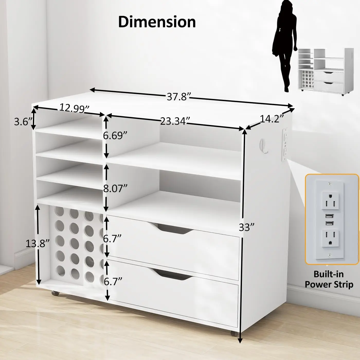 - 【Built-in Charging Station】This craft cart is equipped with a built-in charging station, including 2 standard plug sockets and 2 USB ports, conveniently for power multiple devices simultaneously including cricut machines, phone, computer, heat press machine, etc. Great gift idea for coming Christmas, New year, etc.