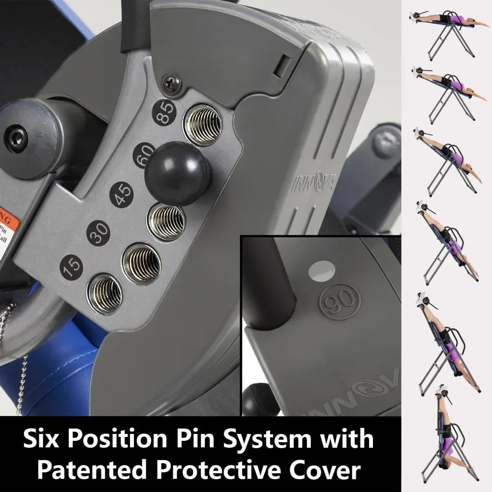 Customizable-INNOVA HEALTH AND FITNESS ITM4800 Advanced Heat And Massage Inversion Table,Black/ Blue / Gray