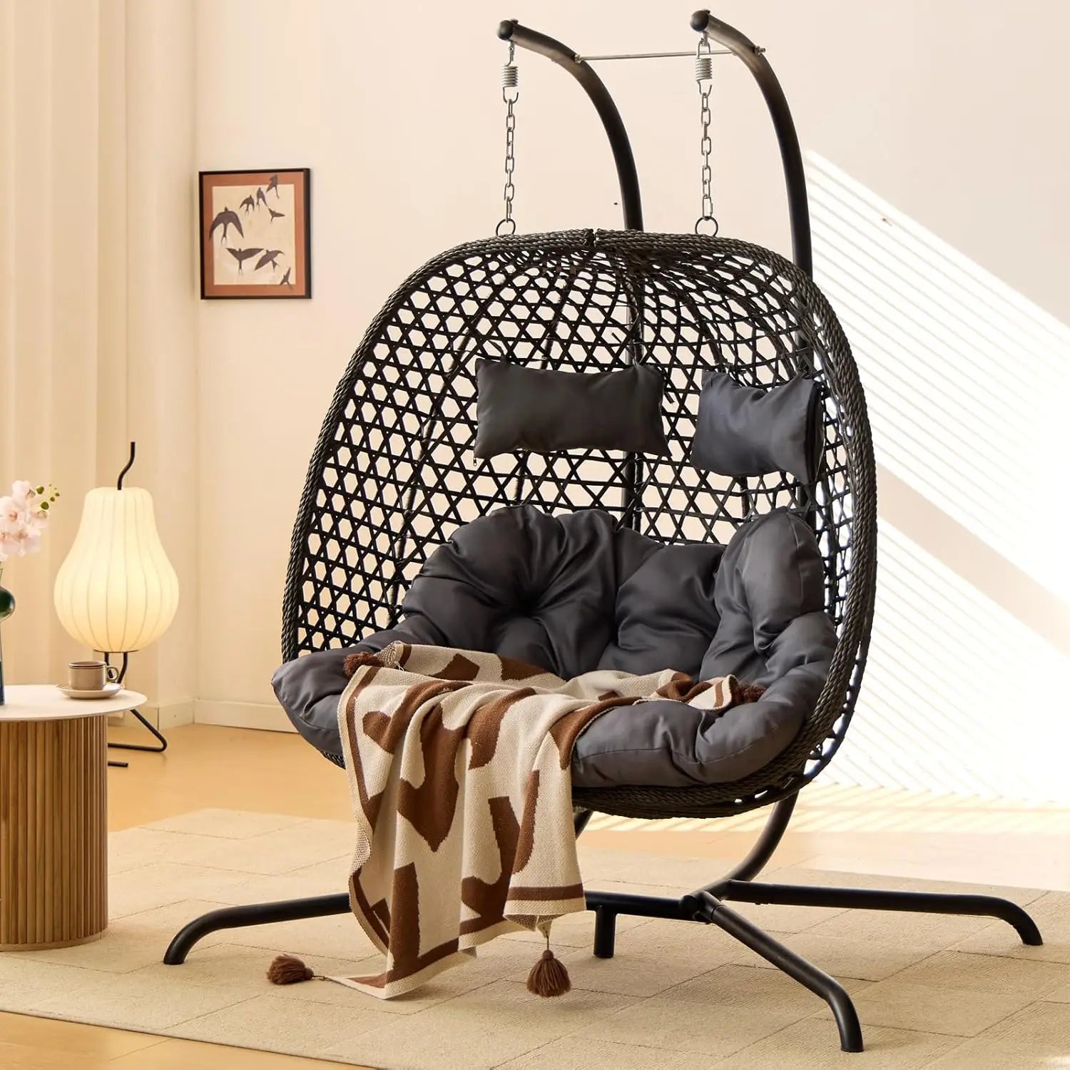 ANGDUO Double Hanging Egg Chair With Stand For Outdoor Patio