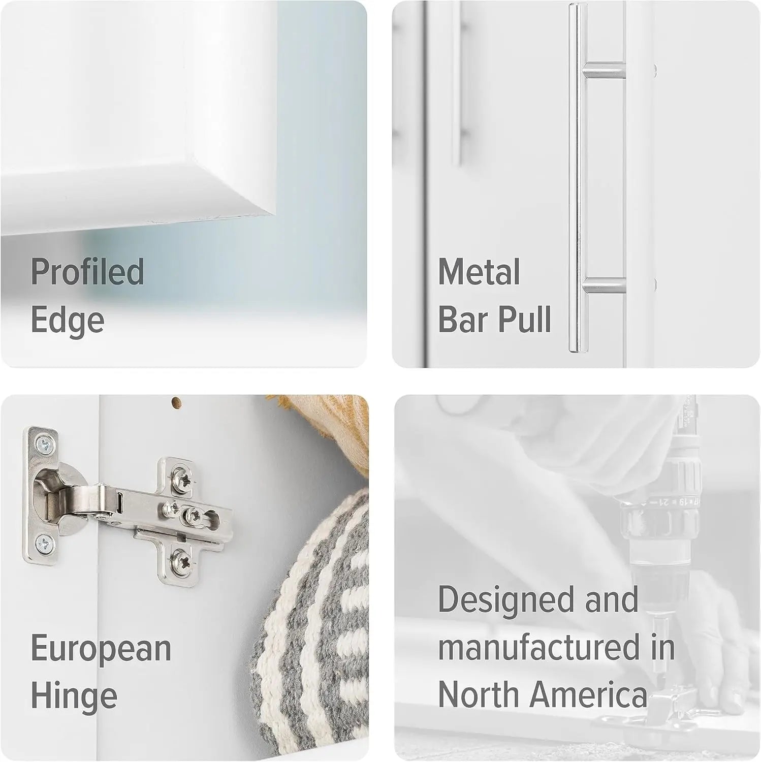 - Elegant aesthetics and easy assembly feature brushed metal handles, rounded edges, a detailed instruction booklet, and a 5-year warranty for parts.