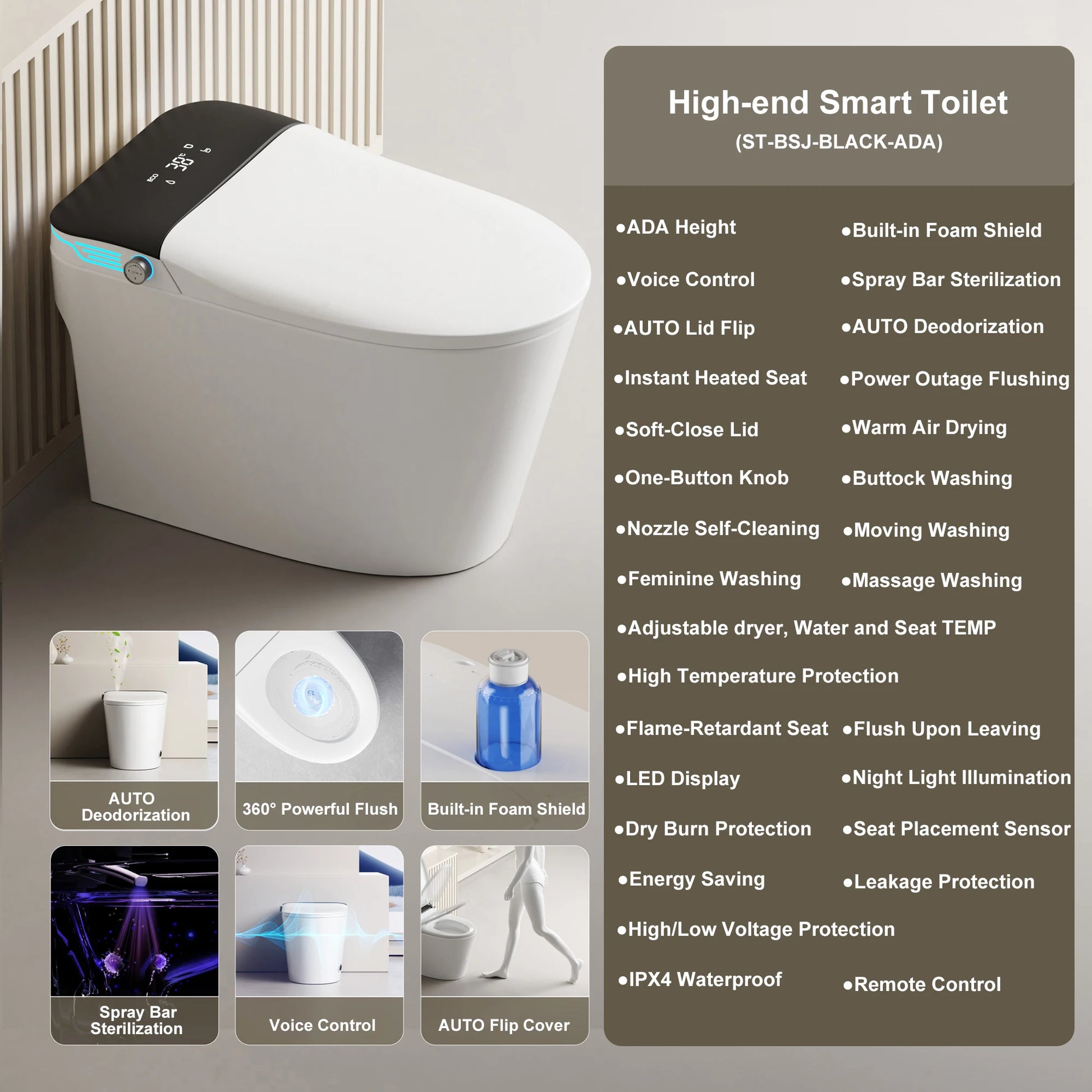 - Self-cleaning nozzles and foam shield technology create a protective foam layer that reduces splash, odors, and buildup in the bowl.
