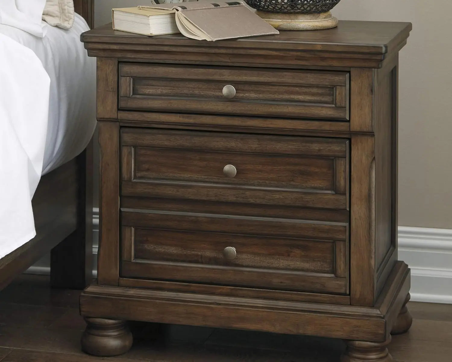 Elevate your bedroom with the Flynnter 2-Drawer Nightstand, a refined blend of traditional charm and modern practicality.