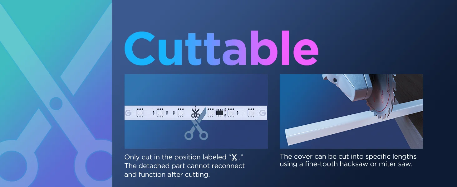 Cuttable: Customize the length you need to design your ideal lighting.The LED lights can be cut.Follow the cutting and splicing instructions to ensure the LED strip lights continue functioning.H61B6 only supports up to 10m.
