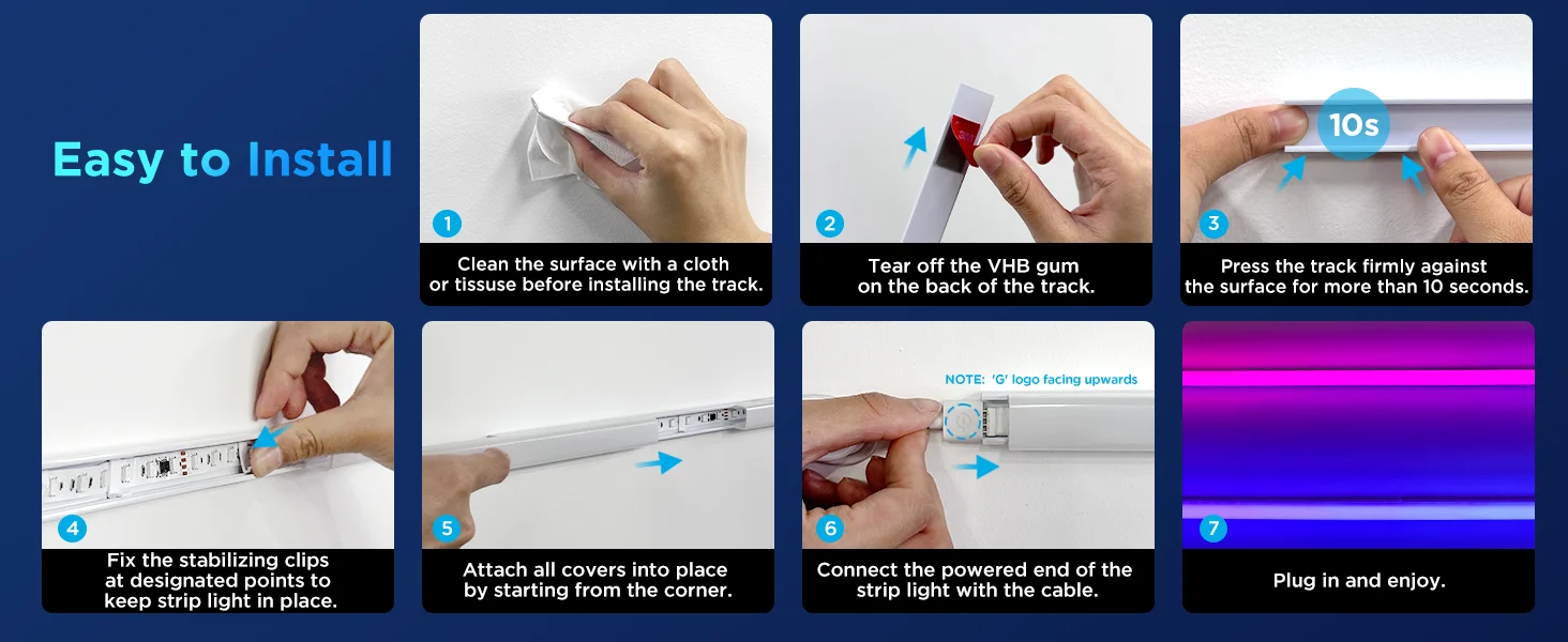 Set Along Inner and Outer Corners: The LED diffuser channel can be applied to skirting lines, ceilings, cabinets, etc.Use the inside and outside corner pieces when applying to inner and outer corners for smoother lighting effects.
