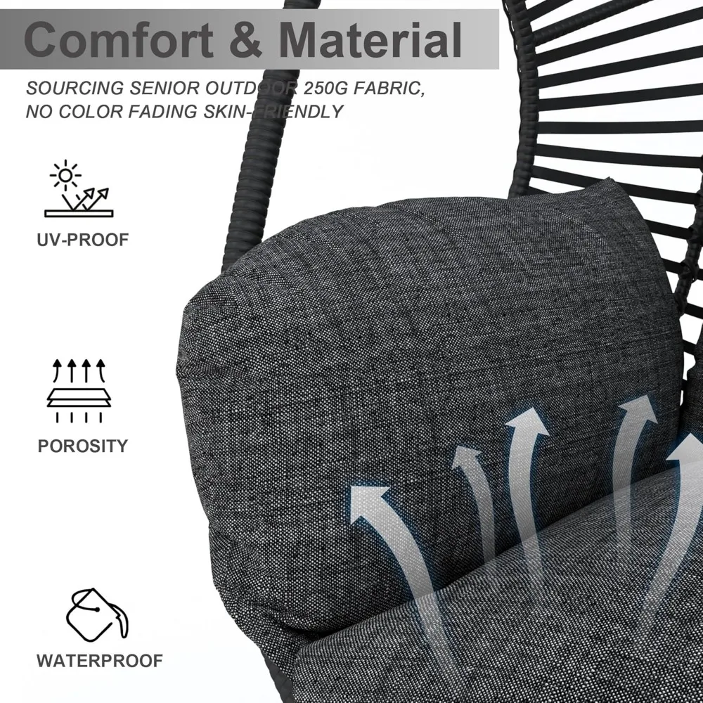 - COMFORTABLE EGG CHAIR: Our hammock chair used a combination of solid steel frame and rattan,comes with soft, UV-resistant cushions that provide ultimate comfort for long sitting sessions, whether you're indoors or enjoying the outdoors.