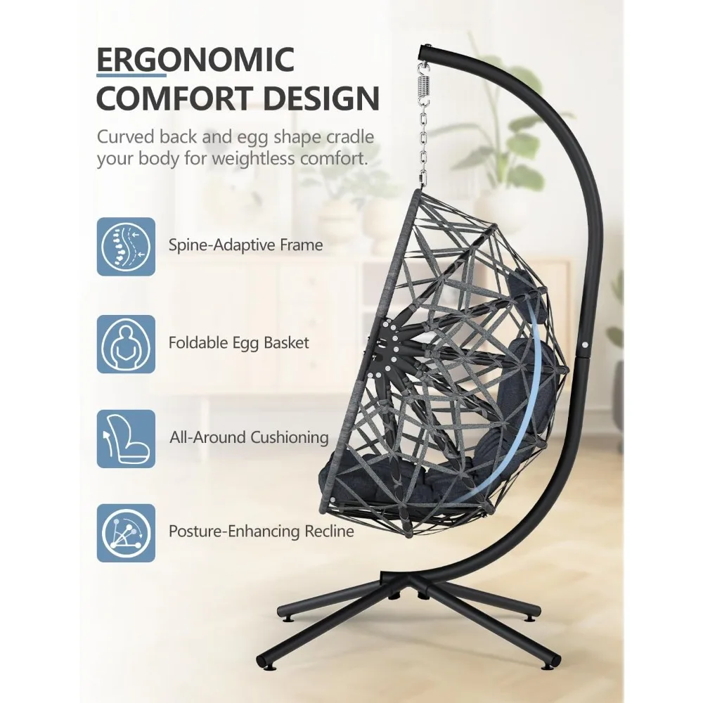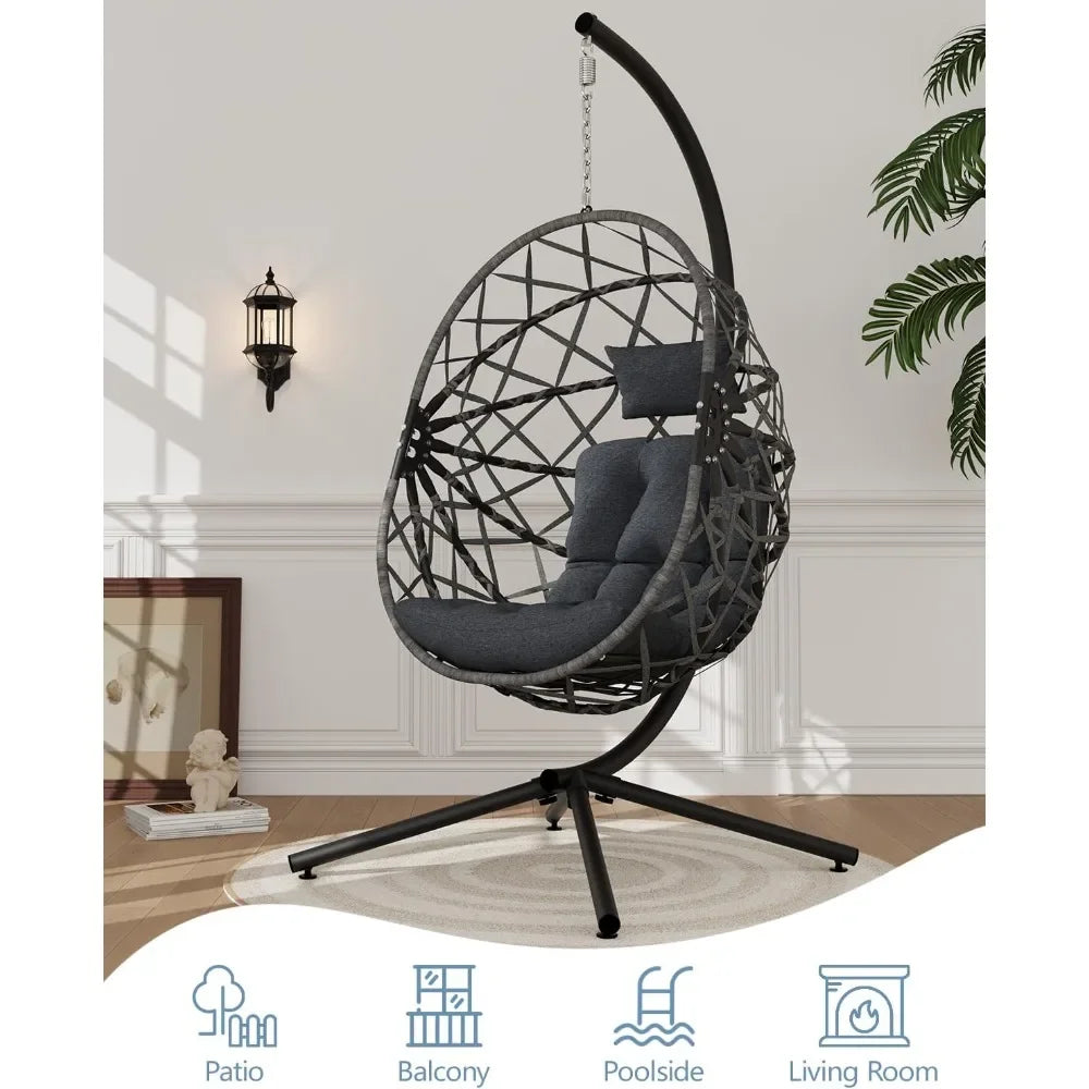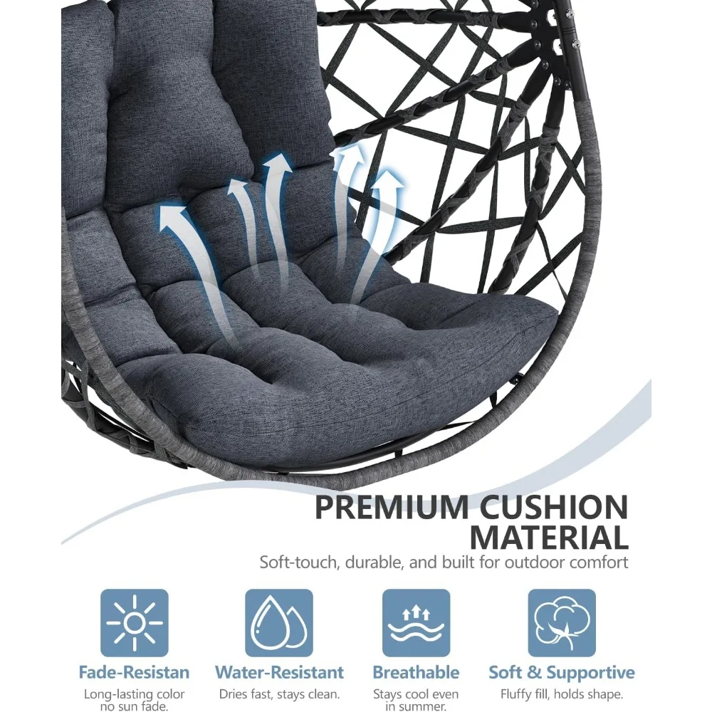 - Oversized Comfort: Relax in a spacious 37.4" x 35.4" egg swing chair with stand. Thick cushions and ergonomic support make this egg swing chair your cozy go-to—indoors or out