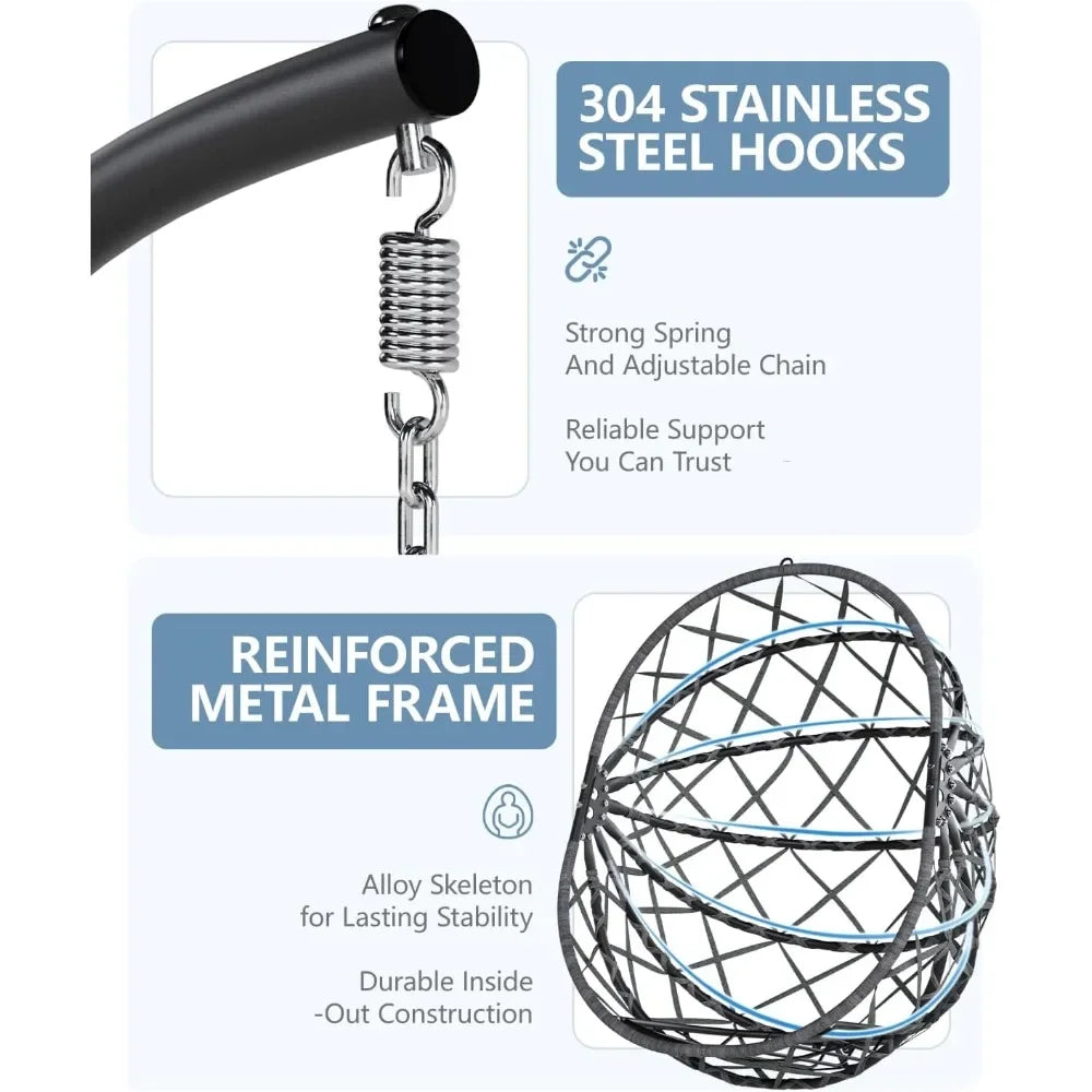 - Weather-Ready Design: This outdoor egg chair features a reinforced steel frame, rust-resistant coating, and waterproof PE wicker for lasting use—from patio to bedroom, rain or shine