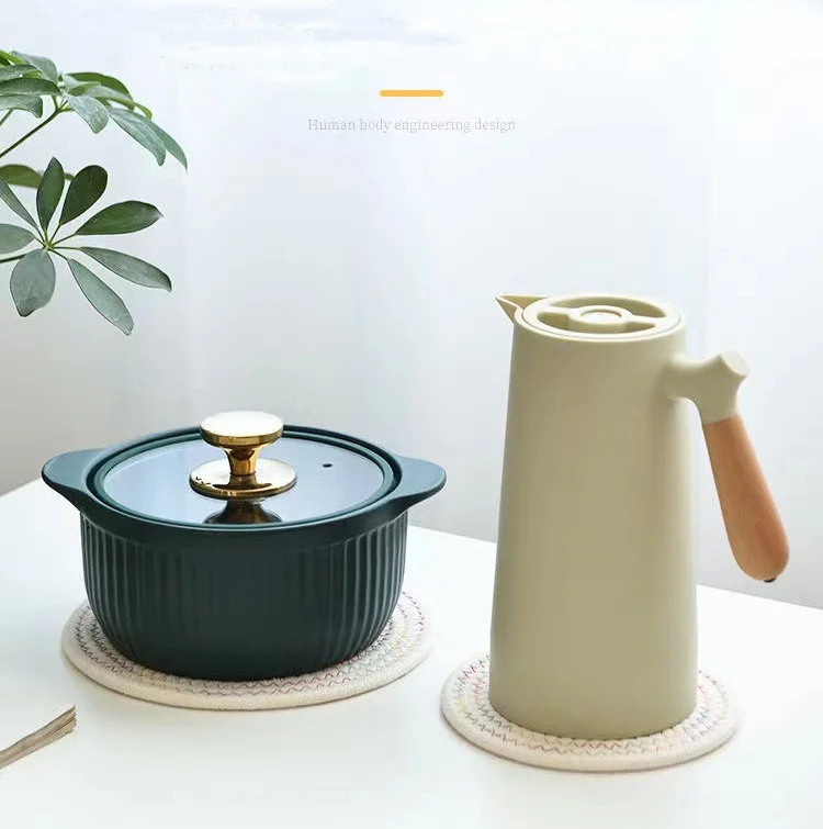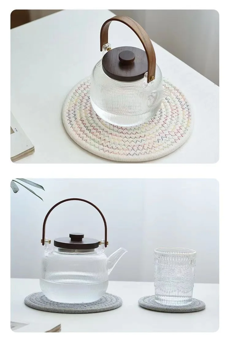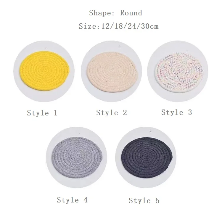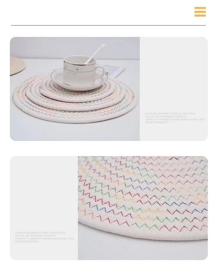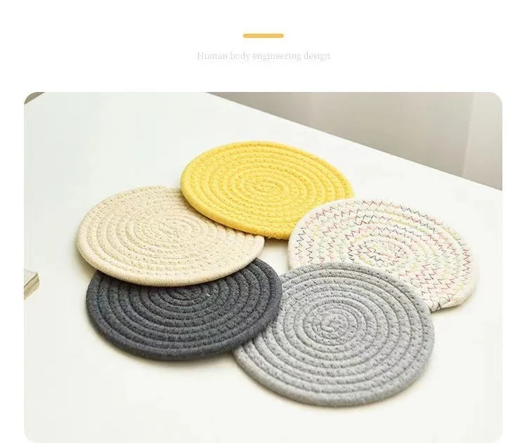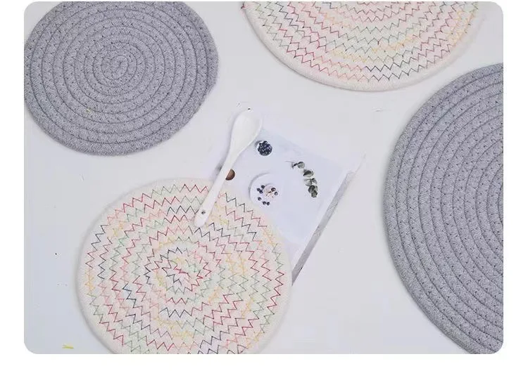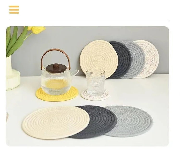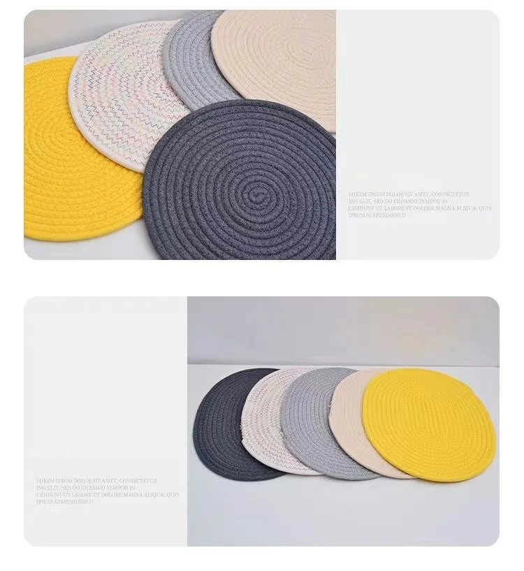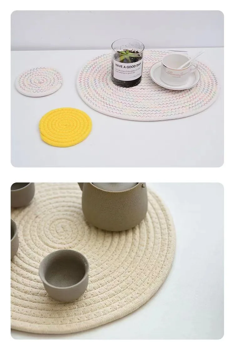 HeMu Round Woven Cotton Dining Table Mat Thermal Insulation Mat Household Anti Scalding Tea Cup Mat Circular Dish Mat