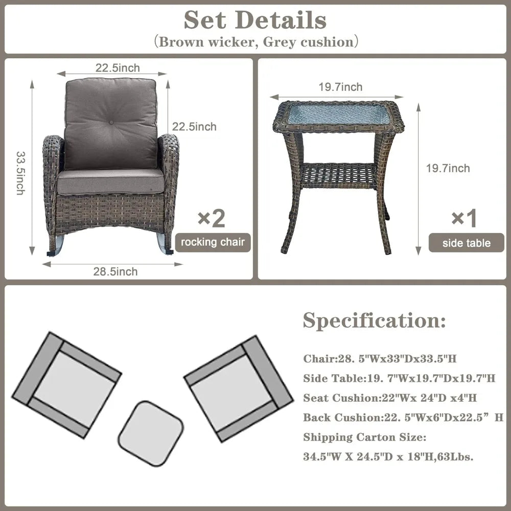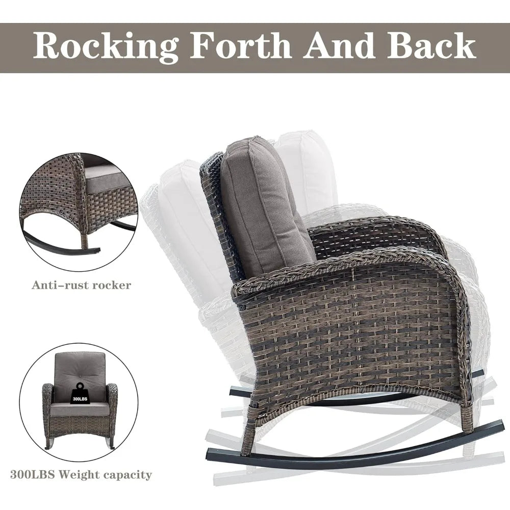 High Back Outdoor Wicker Rocking Chairs Set With Side Table For 3 Ideal For Patio Or Balcony