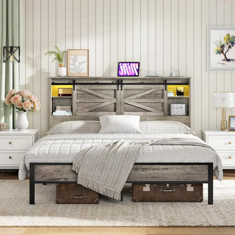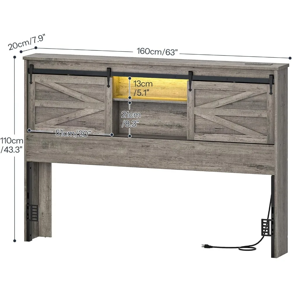 - Farmhouse Headboard: Featuring a greige design with barn-style accents, charming wood grain, and clean lines, this headboard perfectly integrates a bookshelf, sliding barn doors, and classic farmhouse elements, making itself ideal for any home decor