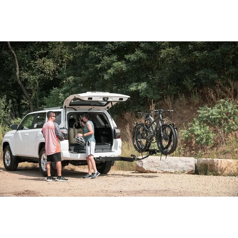EASY TRUNK ACCESS WITH SWING AWAY FUNCTION - Our swing away hitch pivots 90° for full hatch access without removing bikes or cargo, offering spontaneous adventure readiness.