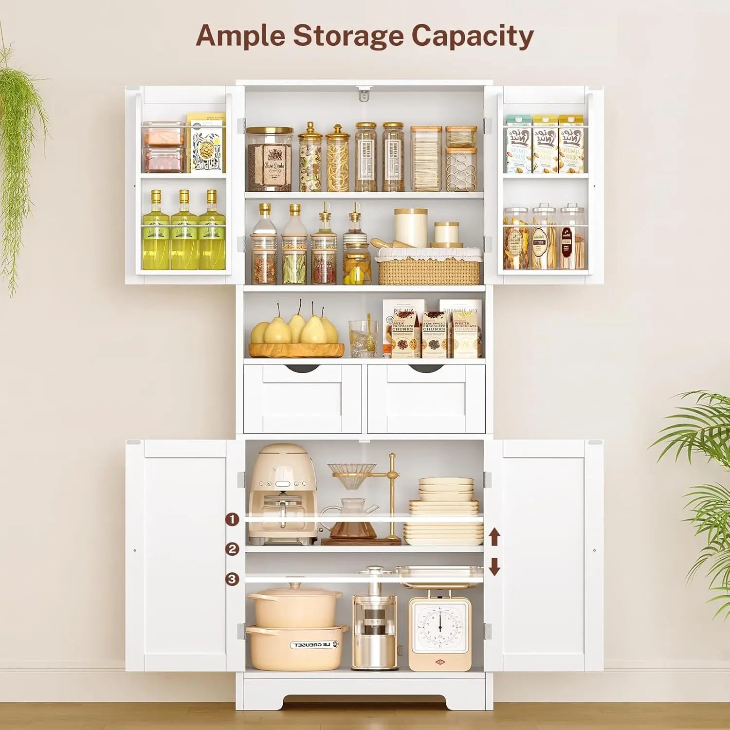 Kitchen Pantry Cabinet With Adjustable Shelves And Two Drawers