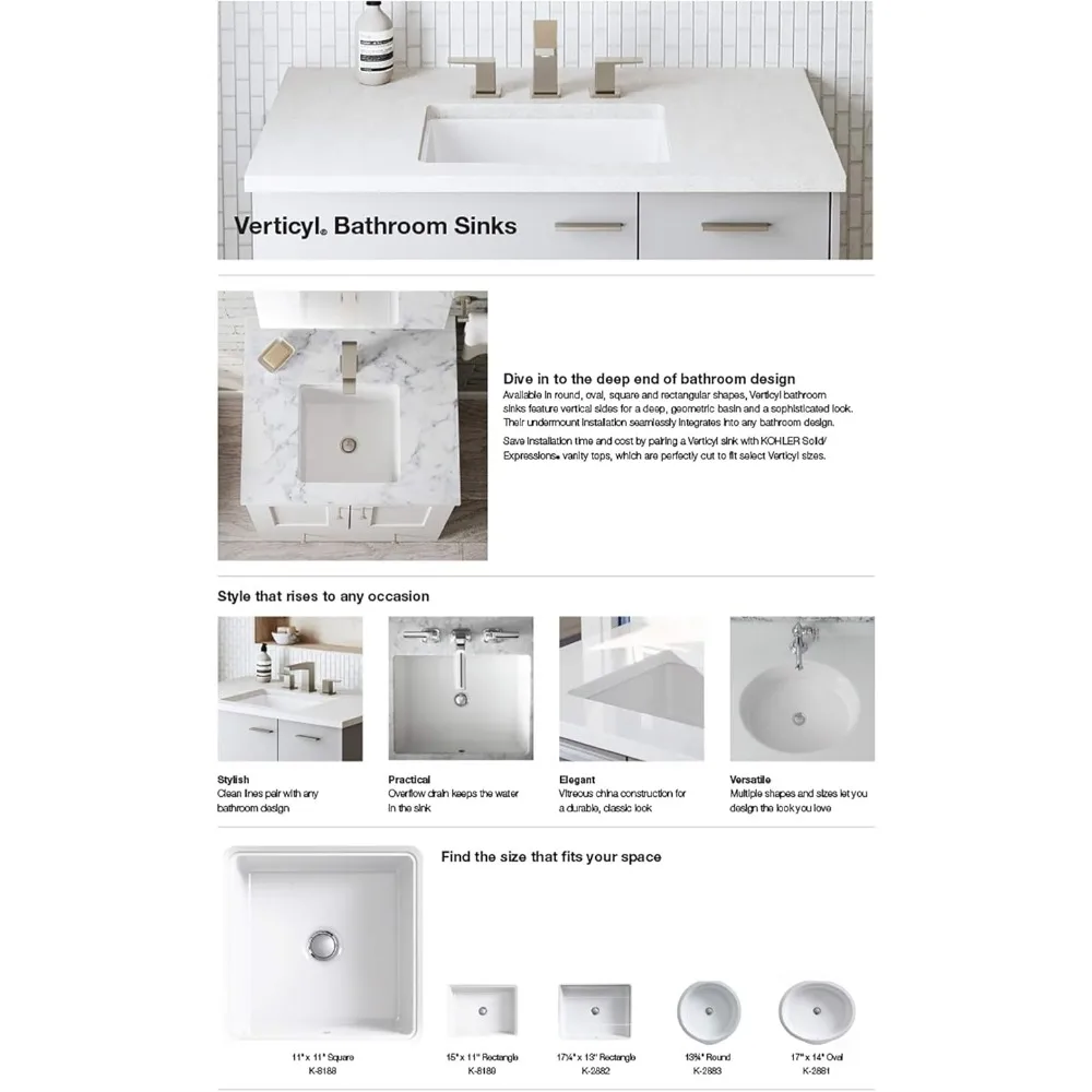 KOHLER Verticyl 17 Undermount Bathroom Vanity Sink With Overflow Drain, Undermount Bathroom Sink, White