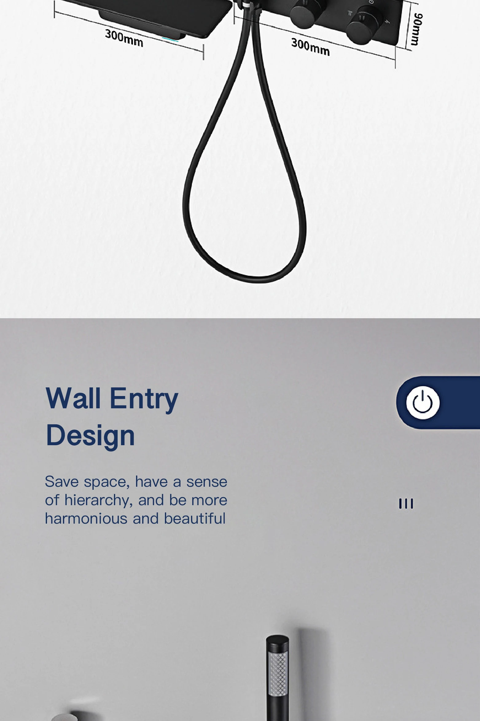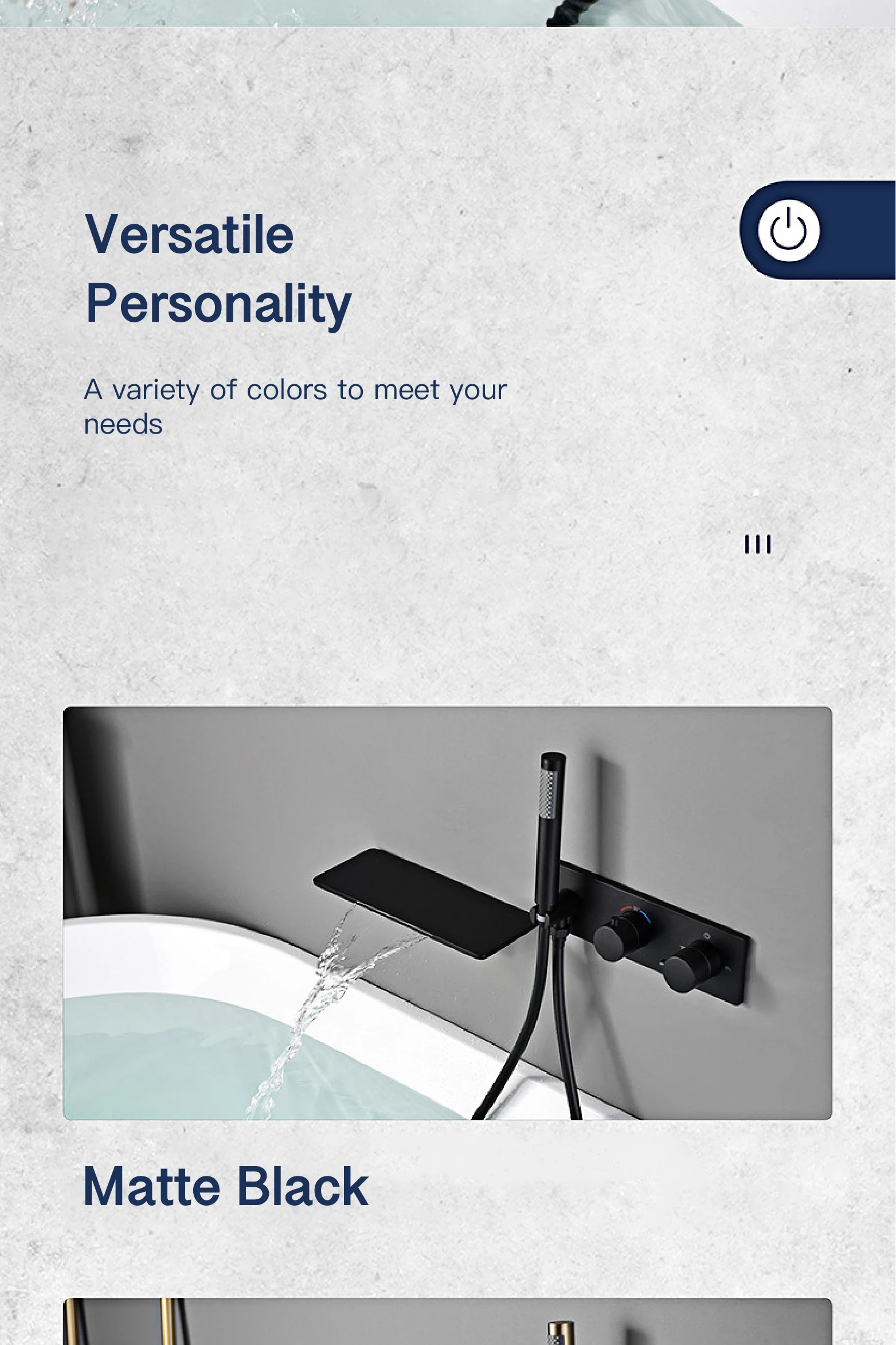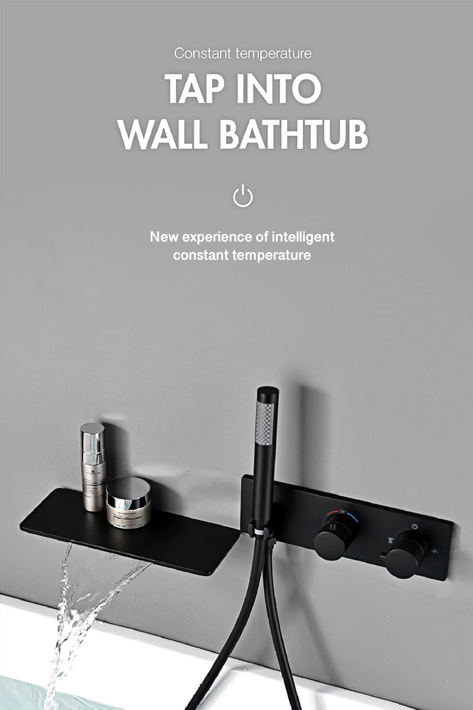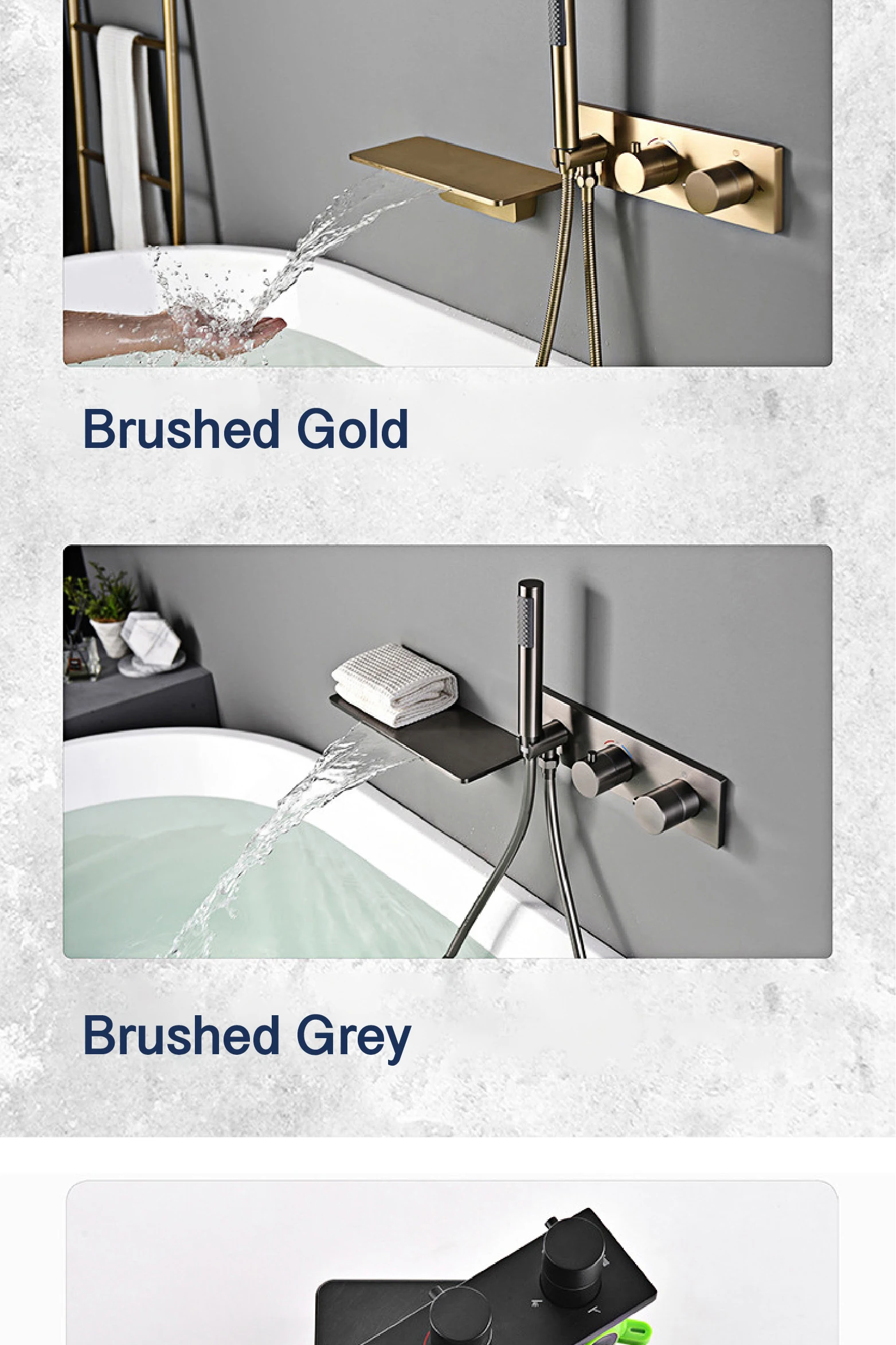 Light luxury brass thermostatic Gun gray bathroom faucet Wall-mounted design Double handle Cold & Hot dual-control bathtub Tap