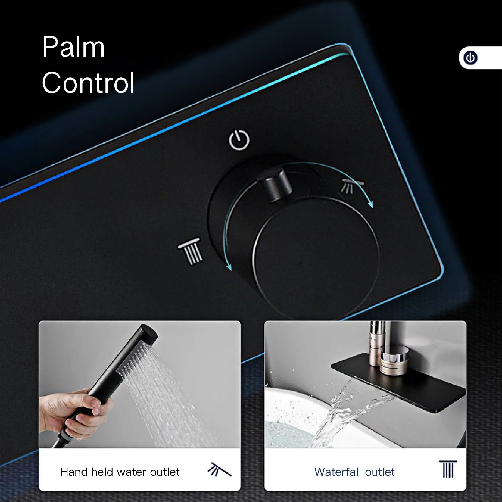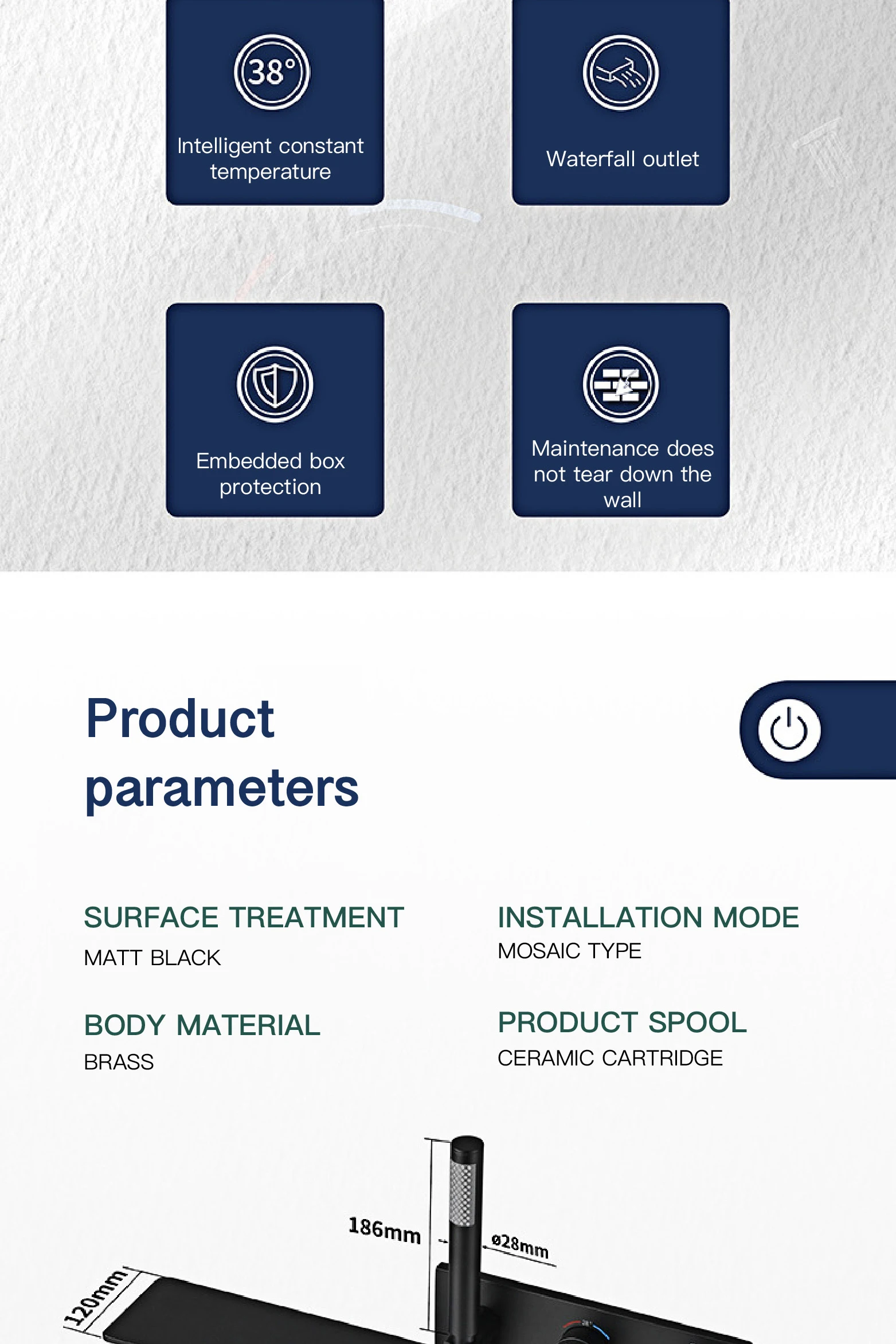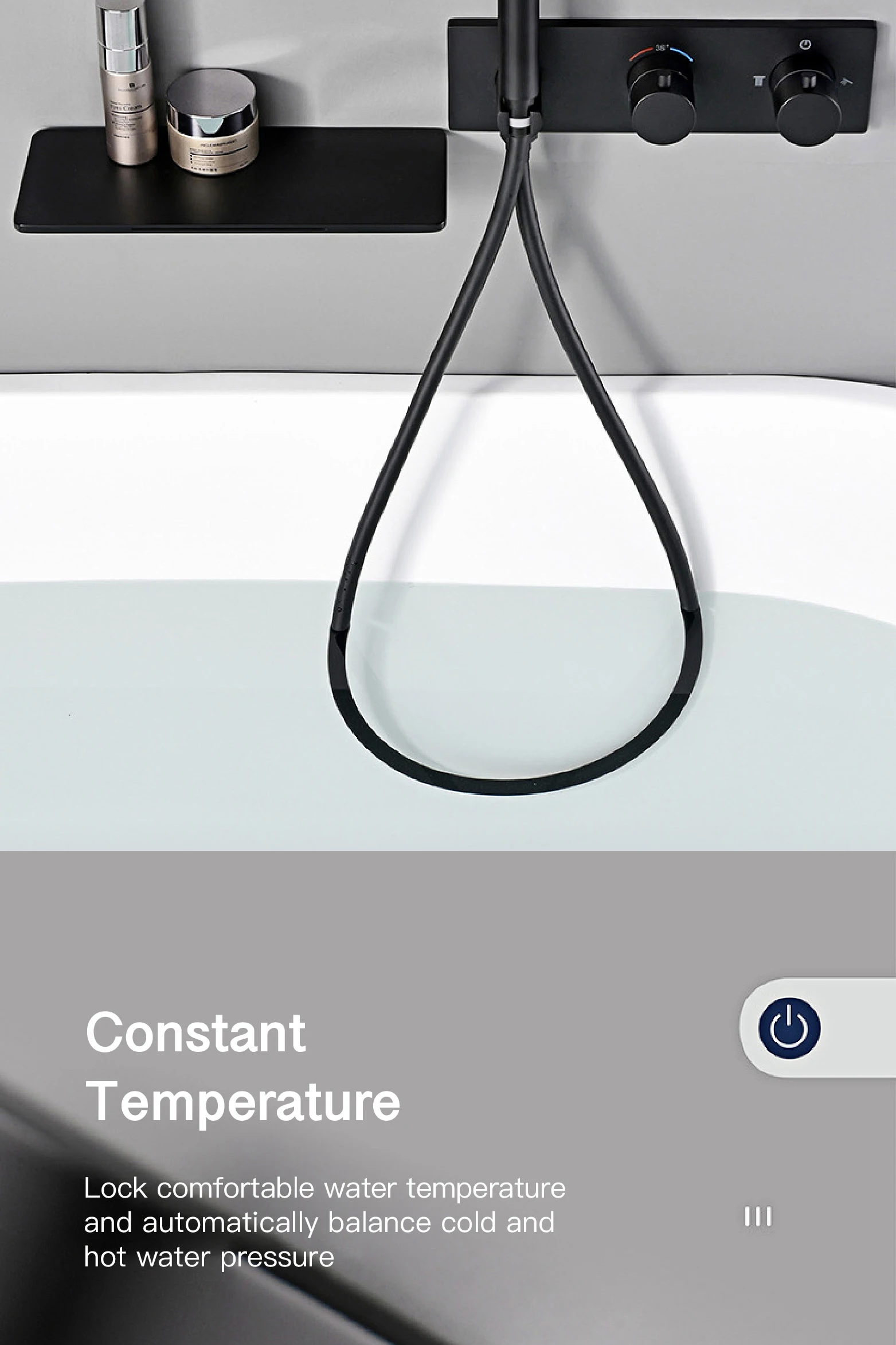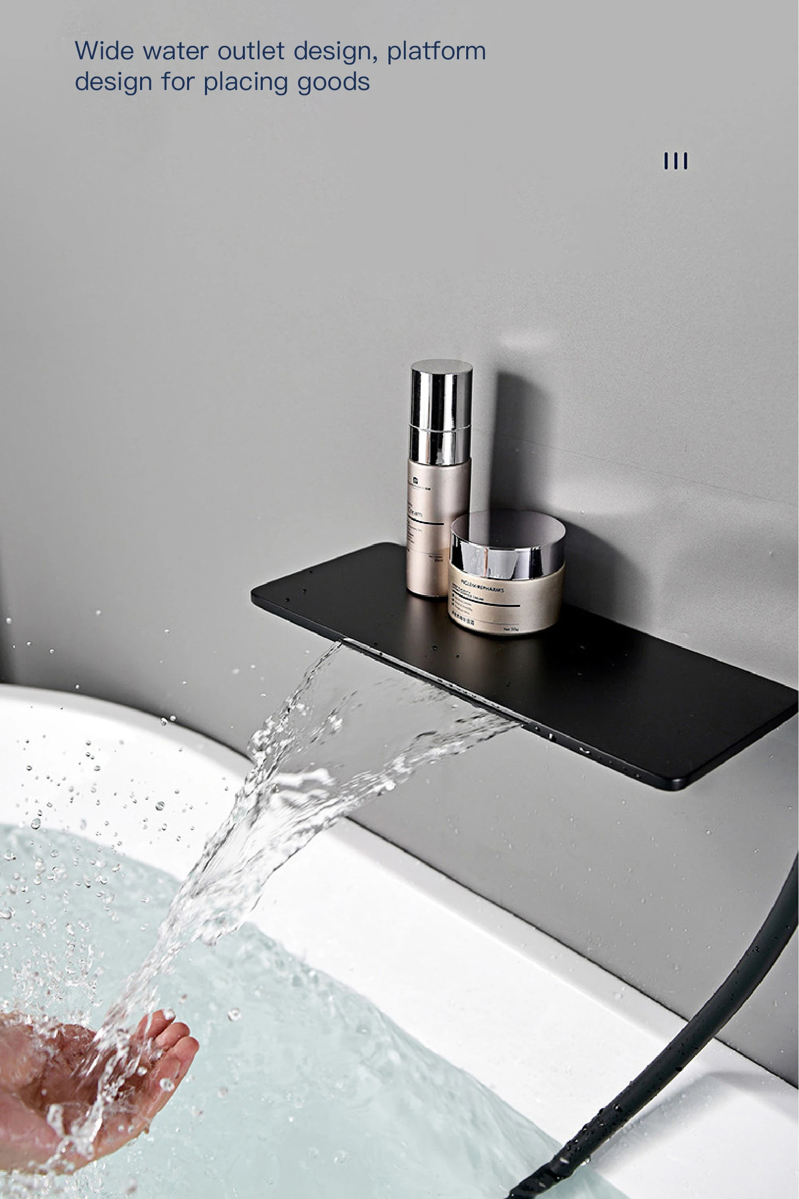 Light luxury brass thermostatic Gun gray bathroom faucet Wall-mounted design Double handle Cold & Hot dual-control bathtub Tap