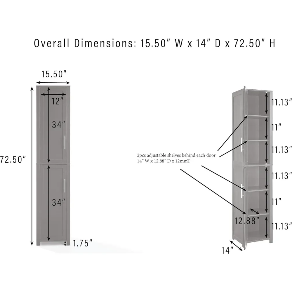 Product Dimensions 14D x 15.5W x 72.5H