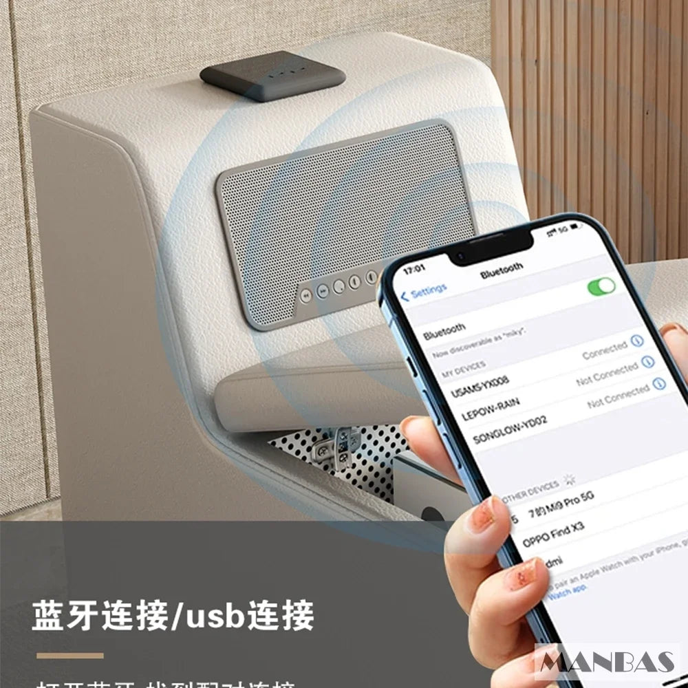 Linlamlim Luxury L Shaped Leather Sectional Sofa With USB Bluetooth