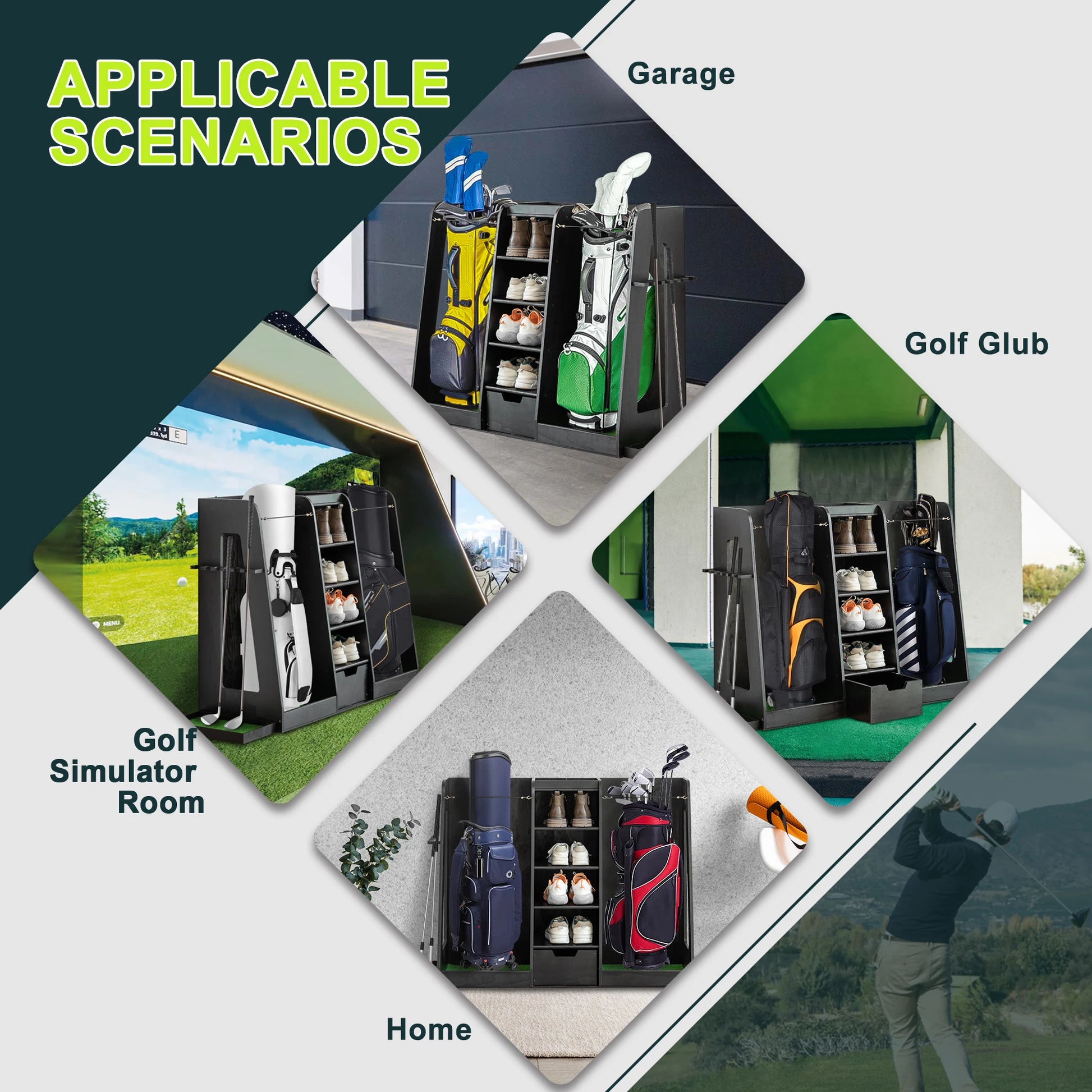【Golf Club Storage Area】For easy access and organization, our storage racks come with a side bracket with club holders, allowing you to easily switch clubs during use.