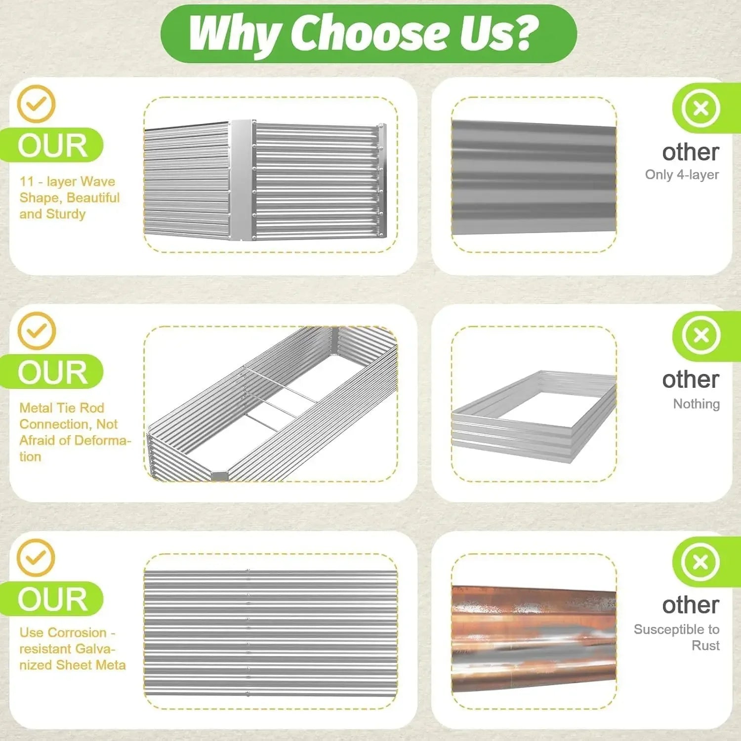 - Durable Raised Garden Bed: The garden bed allow to expose to sun, rain, snow and so on for a long time.