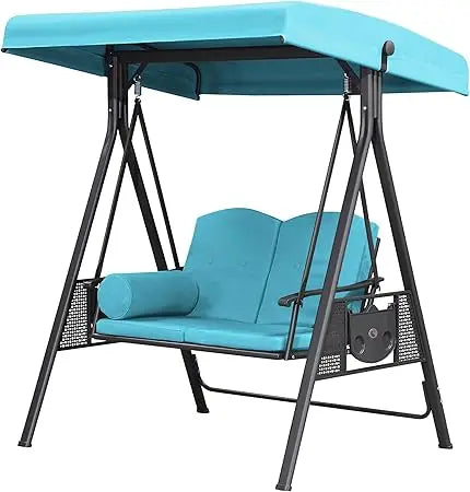 Enjoy shaded, relaxing backyard moments with a two-seat patio porch swing on a sturdy stand that blends comfort, durability, and adjustable canopy shade.