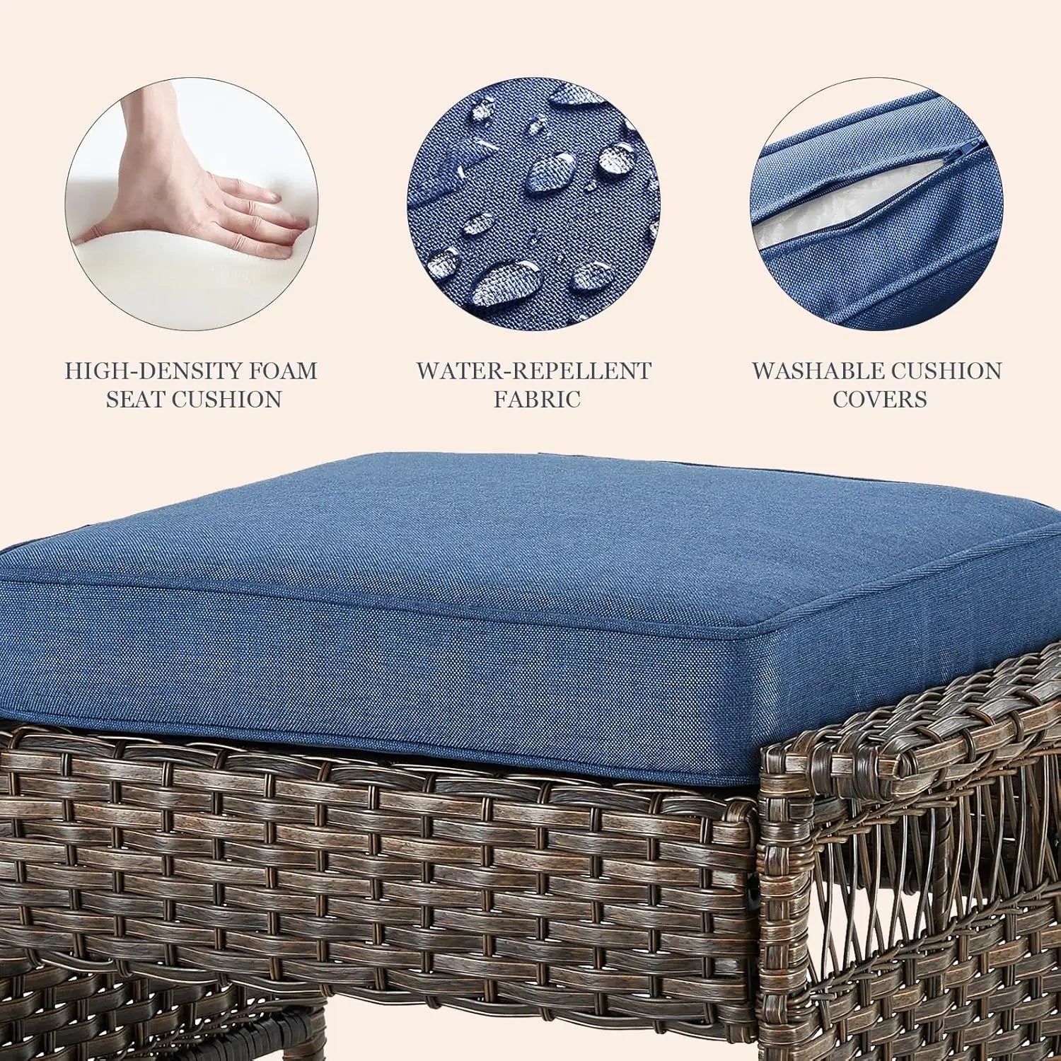 - FUNCTIONAL RATTAN OTTOMANS: The 2 included rattan patio ottomans provide additional seating or can be used as footrests, offering versatility and practicality in your outdoor oasis.